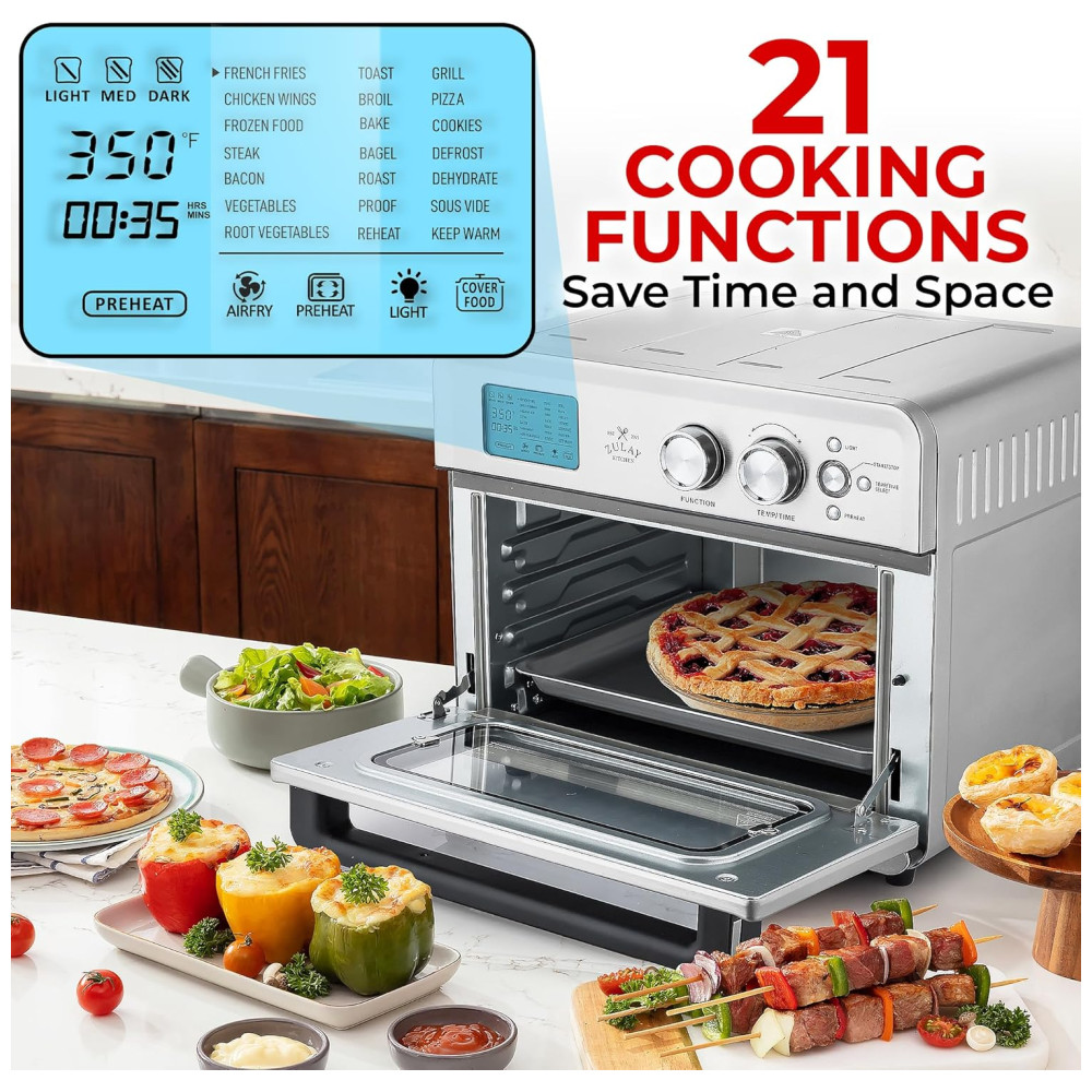 Forno Elétrico de Bancada 25 Litros com 21 Funções Incluindo Rotisserie Aço Inoxidável 110V 1800W Zulay Prata