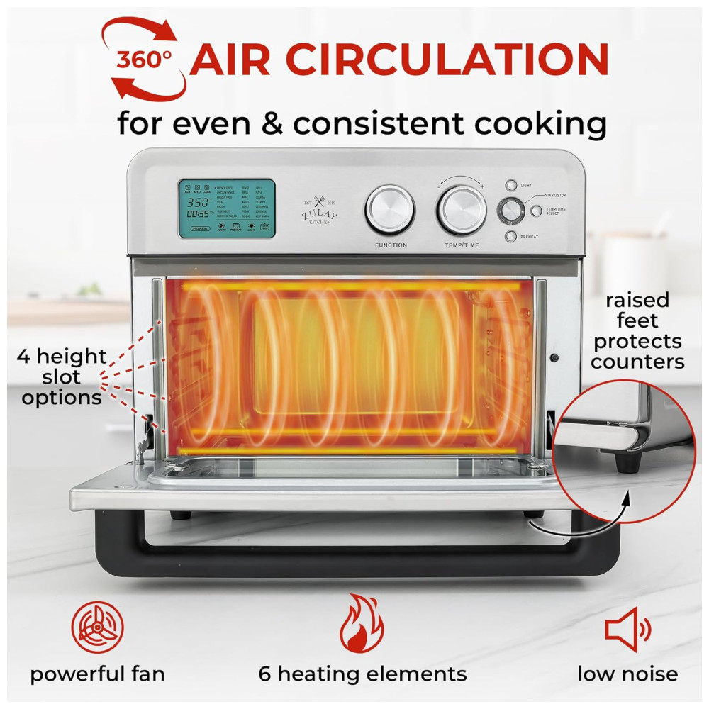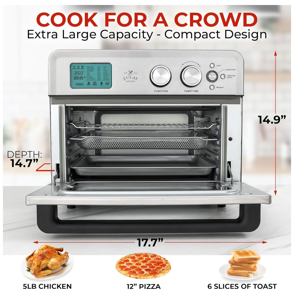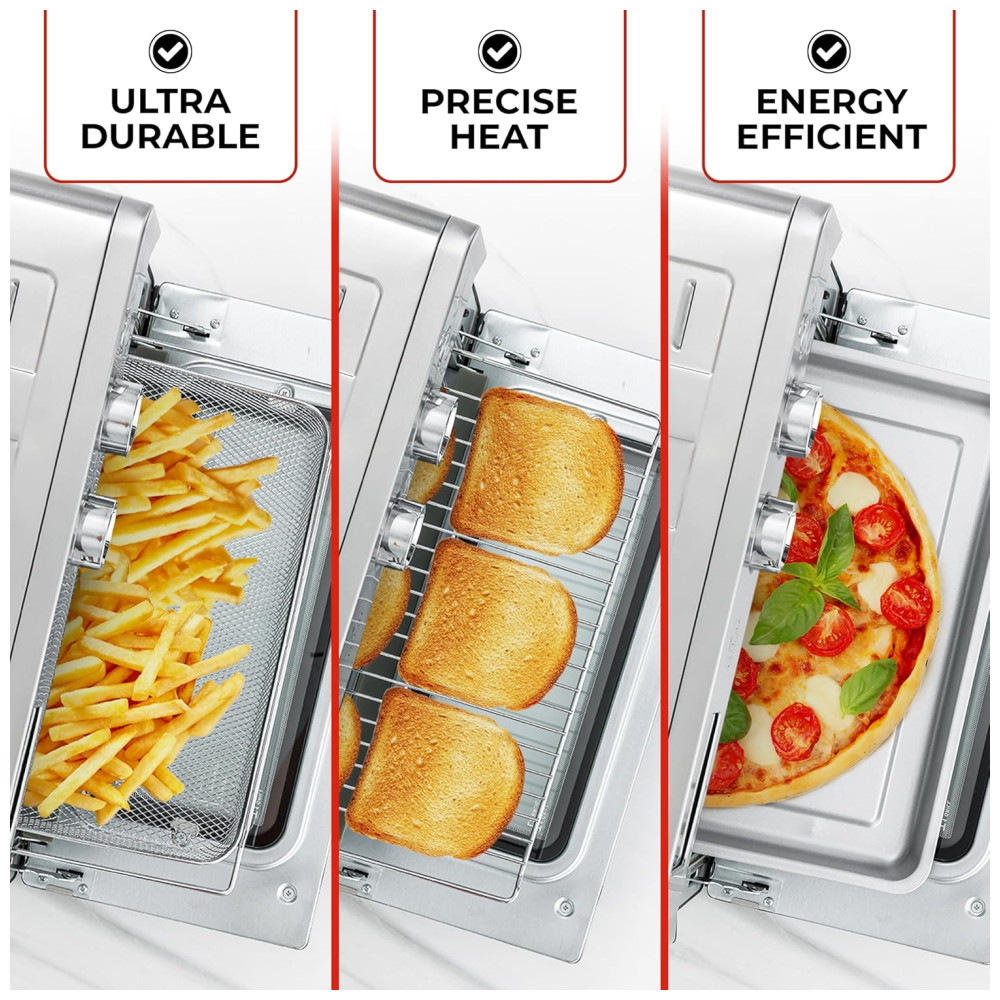 CAPACIDADE EXTRA GRANDE: Refeições em família prontas em minutos Nossa fritadeira de torradeira é construída com as necessidades da família em mente seu interior grande pode facilmente acomodar um frango inteiro, pizza 12 ml, a maioria das panelas de 9 x , e pratos em tamanho grande para caçarolas, lasanha e muito mais. Este forno elétrico tem dimensões externas de 17,7 x 14,9 x 14,7 centímetros para caber facilmente no seu balcão.