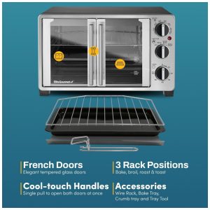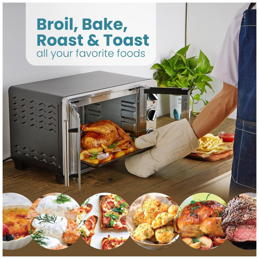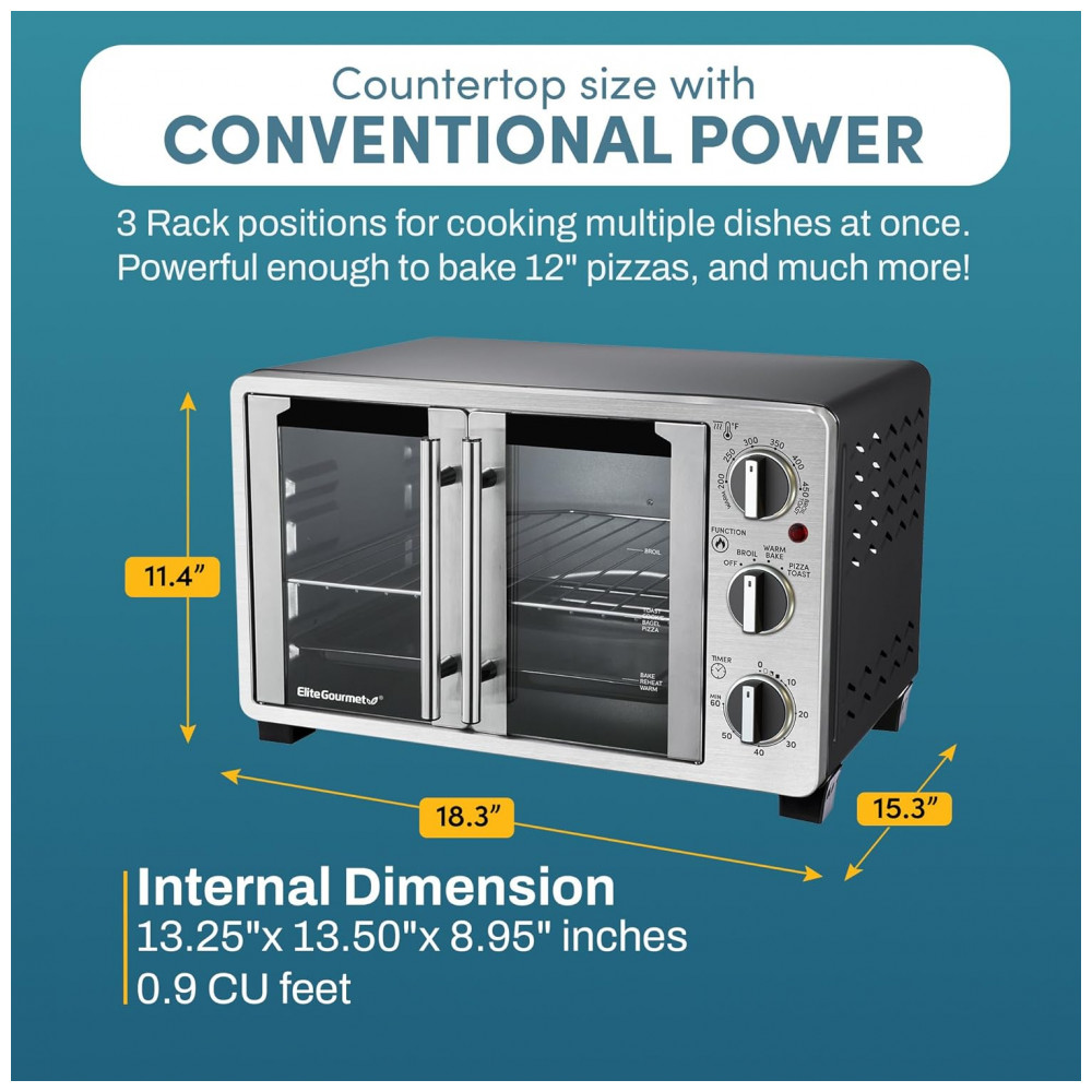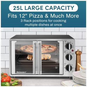 Apresentando o Forno Tostador de Bancada Elite Gourmet ETO2530M – Design Compacto com Porta Dupla Francesa e Capacidade Extra-Large: