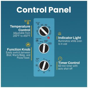 Controle de Cozimento Preciso: Equipado com um seletor de aquecimento ajustável, o forno oferece funções específicas para assar, grelhar, tostar, fazer pizzas e manter a comida aquecida, proporcionando flexibilidade para qualquer receita.
