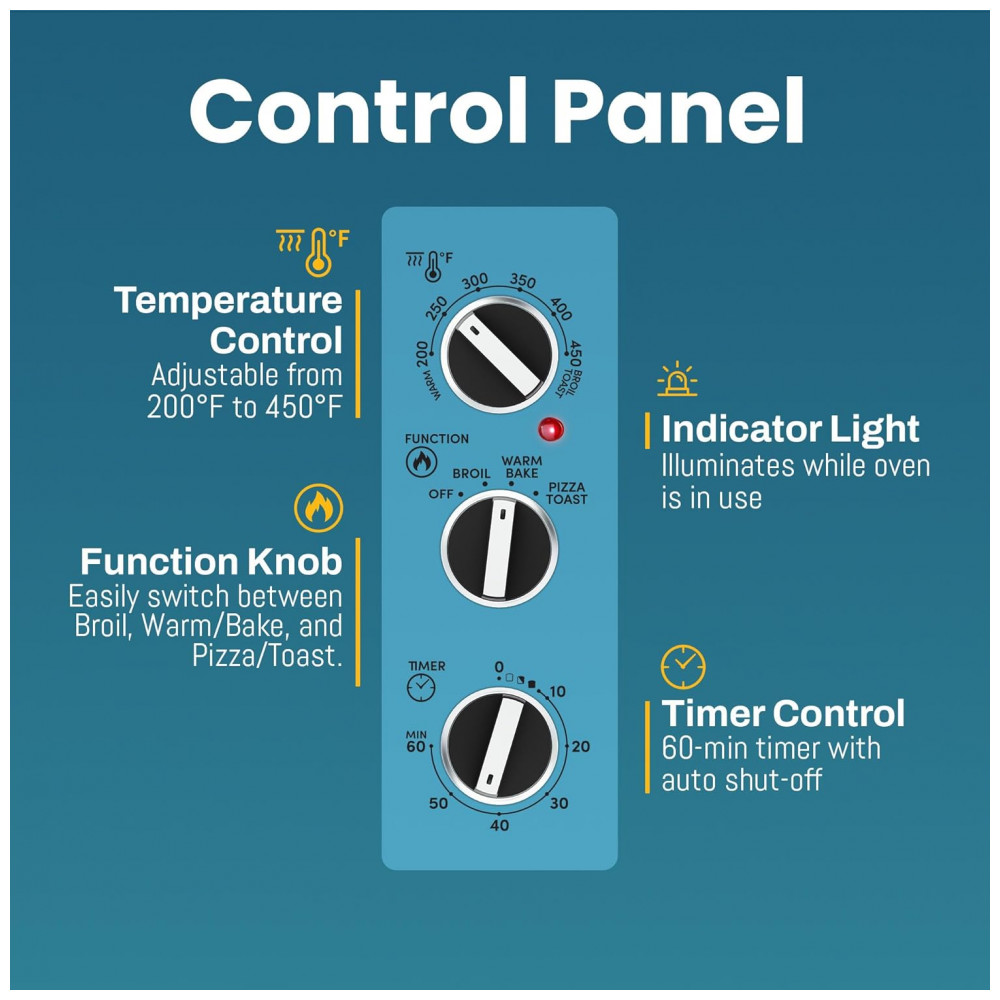 Timer Ajustável: Inclui um timer de 60 minutos com campainha indicadora e ajuste de nível de tostagem, garantindo que seus pratos fiquem no ponto certo, sem o risco de queimarem.