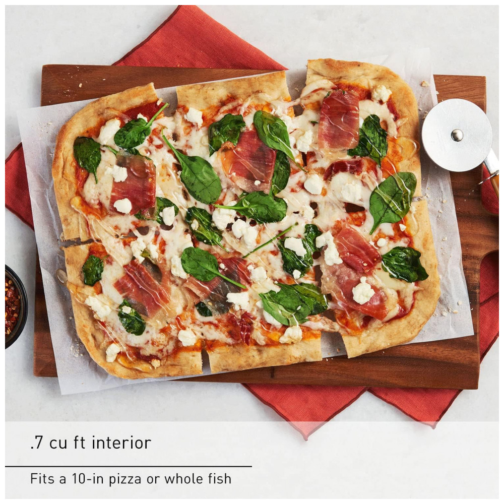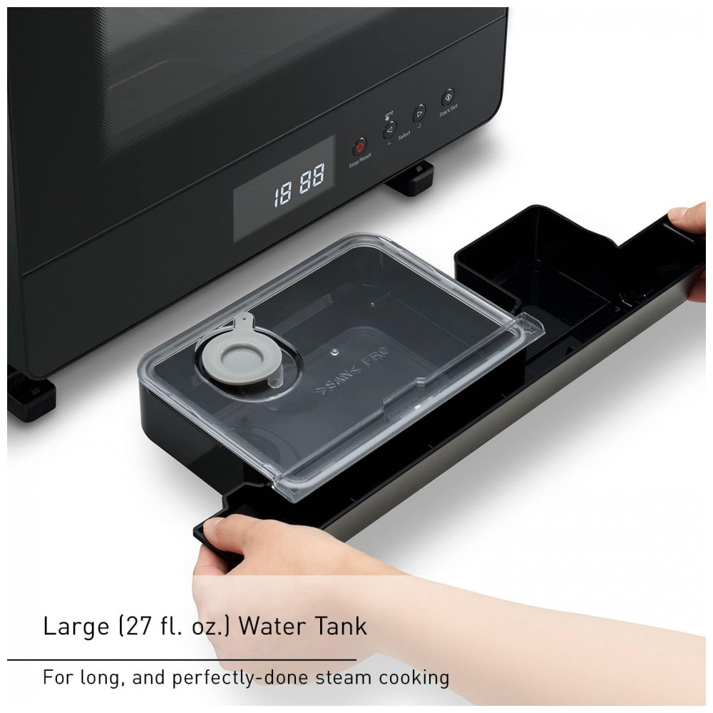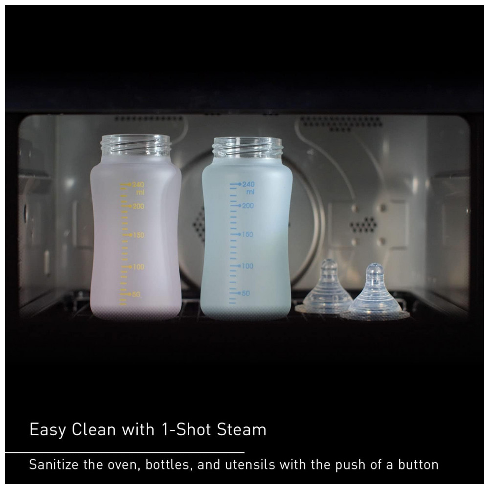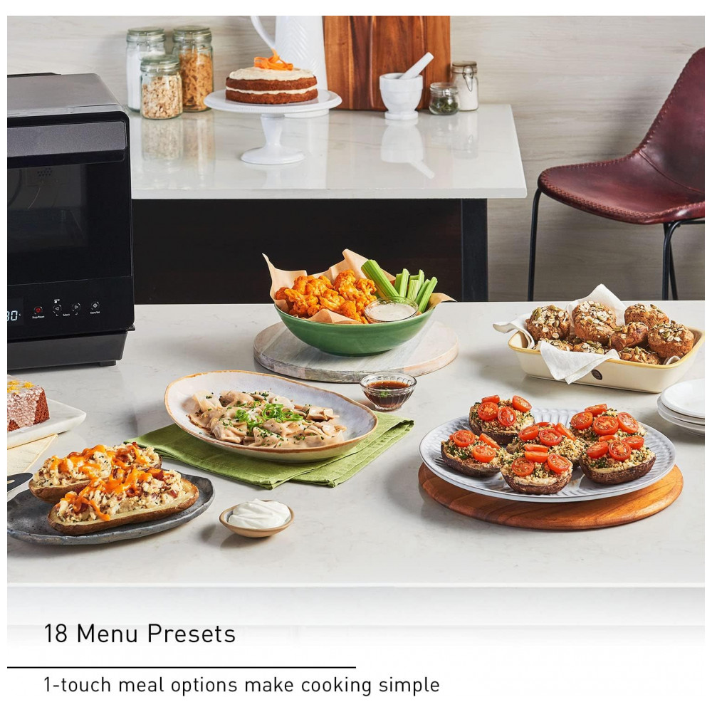 Interior Espaçoso e Fácil de Limpar: Com capacidade de 20 litros (0,7 pés cúbicos), acomoda uma pizza de 25 cm, um peixe inteiro ou um pequeno frango. O interior é fácil de limpar e o vapor em alta temperatura auxilia na sanitização do compartimento, garrafas e utensílios.