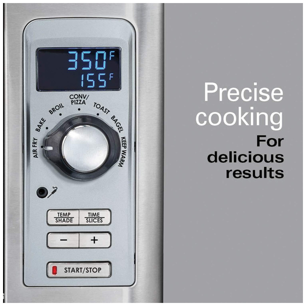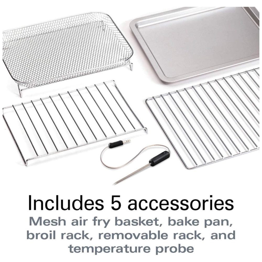 7 CONFIGURAÇÕES VERSÁTEIS MAIS SONDA PARA COZEDURA MULTI FUNCIONAL. Passe de fritar frango no ar na sexta feira para assar carne assada com a sonda no domingo. Configurações adicionais para torradas, bagel, pizza, assar, grelhar e manter aquecido fornecem versatilidade de cozimento.