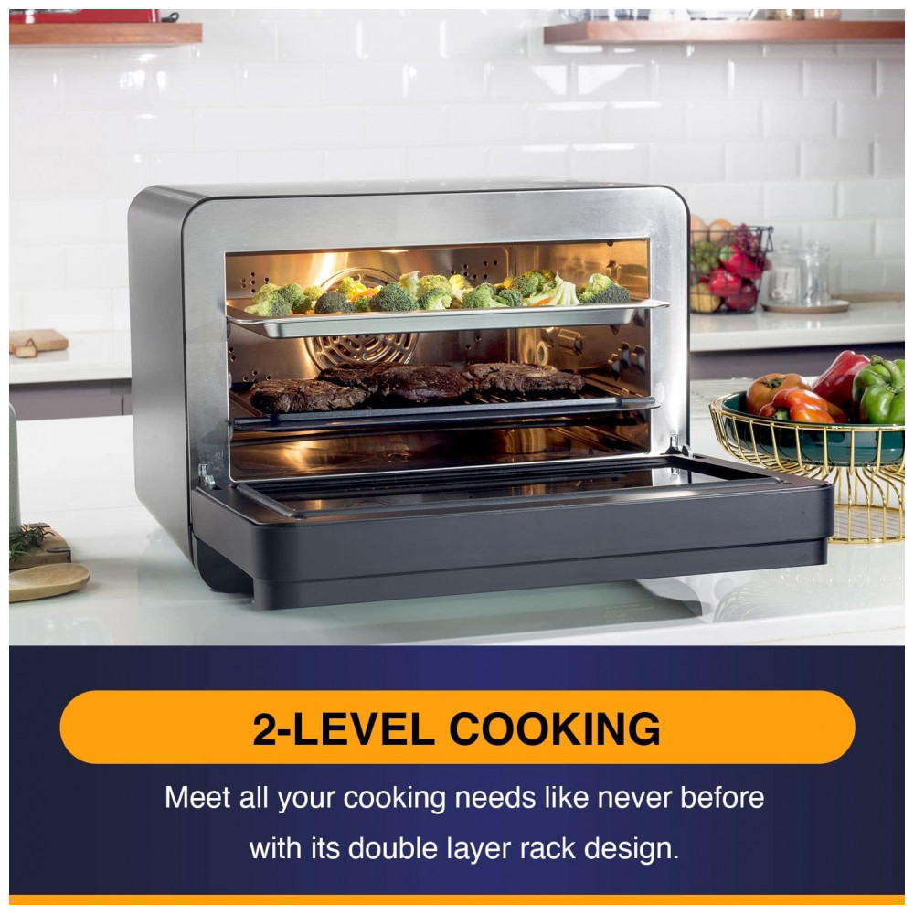 Painel de Controle Intuitivo e Fácil de Usar: Com um painel de toque moderno e display LED grande, você pode acessar funções com apenas um toque, incluindo Vapor, Vapor & Assar, Convecção e Air Fry. Torne cada preparo mais rápido e seguro.