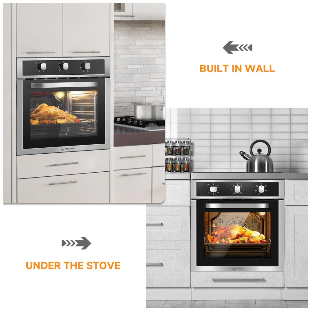Forno Elétrico de Parede 60 Centímetros AMZCHEF 2200W 6 Modos de Cozimento 70 Litros Convecção com Controle