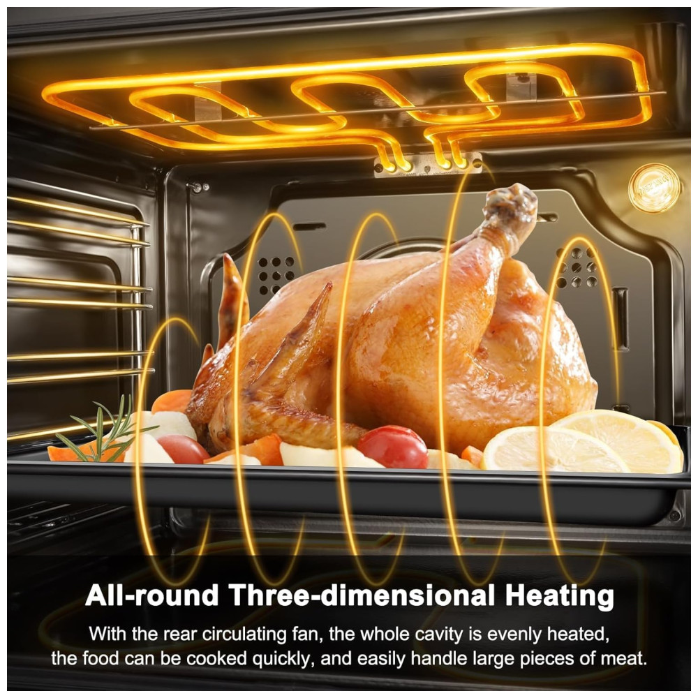 O Forno Elétrico de Convecção AMZCHEF de 70 litros oferece um sistema de cocção por convecção potente, que circula ar aquecido por cima, por baixo e ao redor dos alimentos, garantindo a temperatura ideal e fluxo de ar para um rápido aquecimento e cozimento uniforme. Com 8 modos de programação automática incluindo isolamento, aquecimento, torrada, pizza, modo coxa de frango, pão, bolo e carne. Este forno elétrico possui timer multifuncional, trava de segurança e design moderno que se encaixa perfeitamente na sua cozinha.