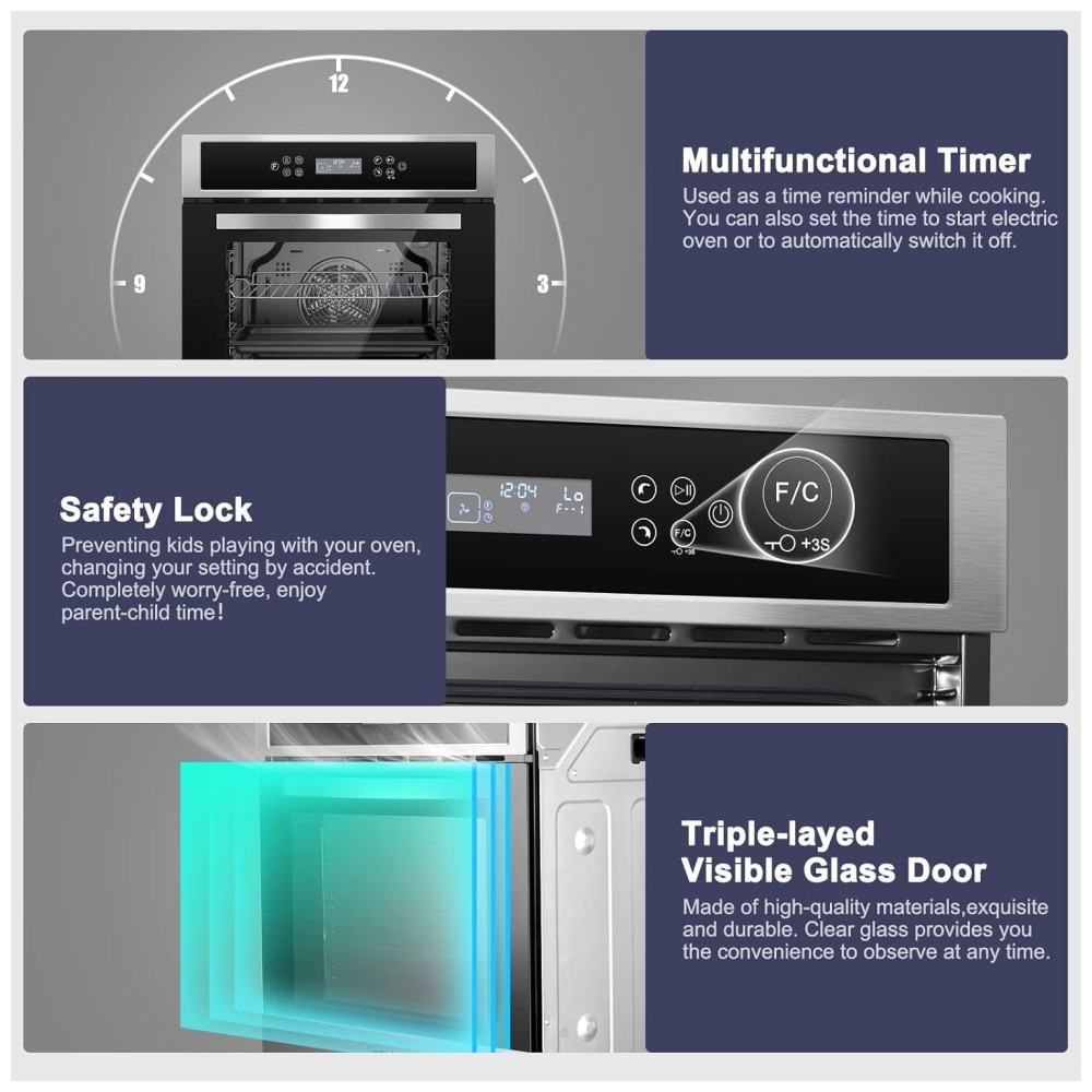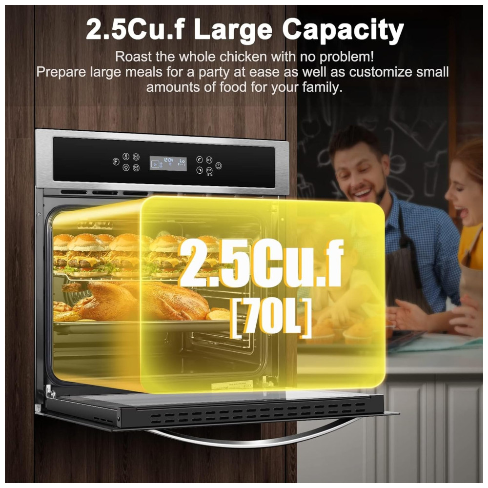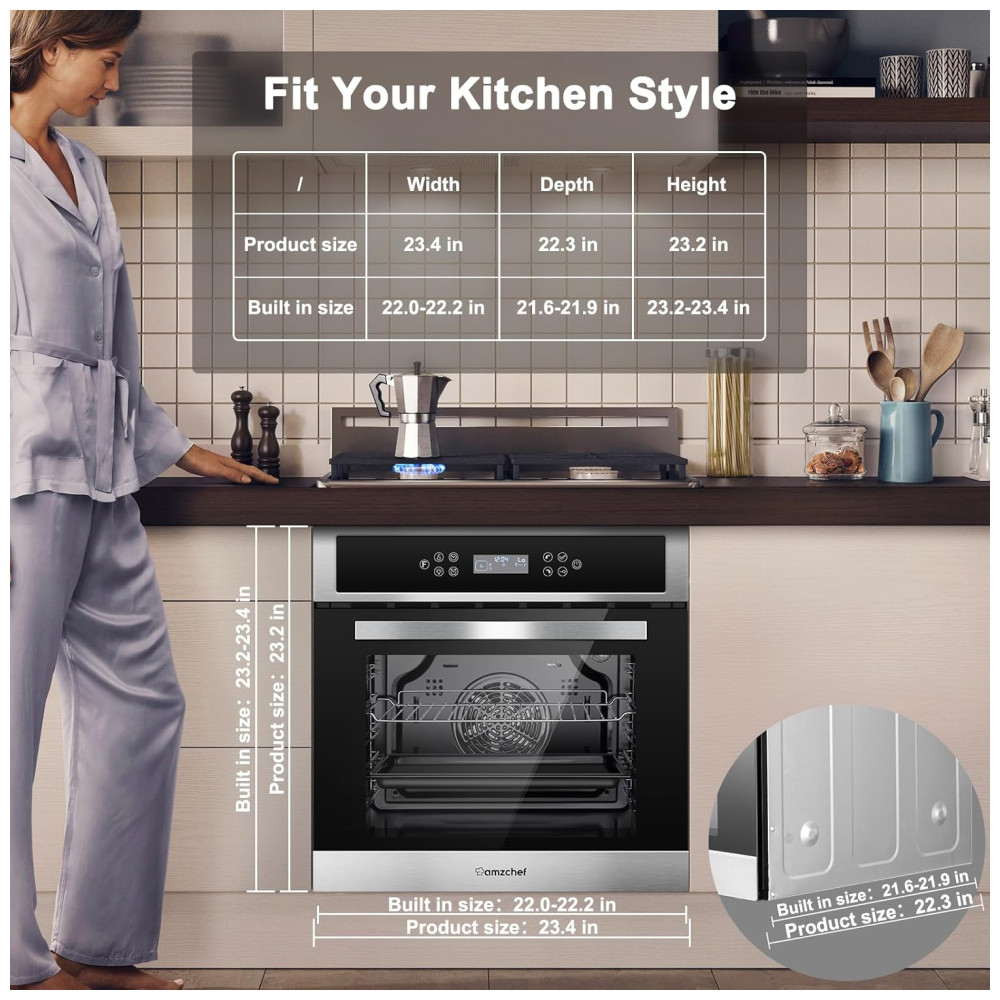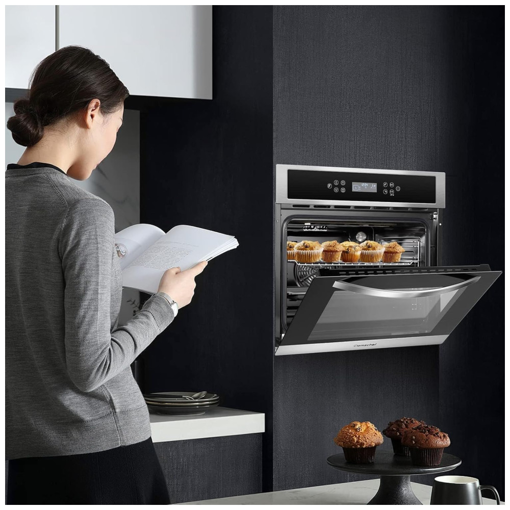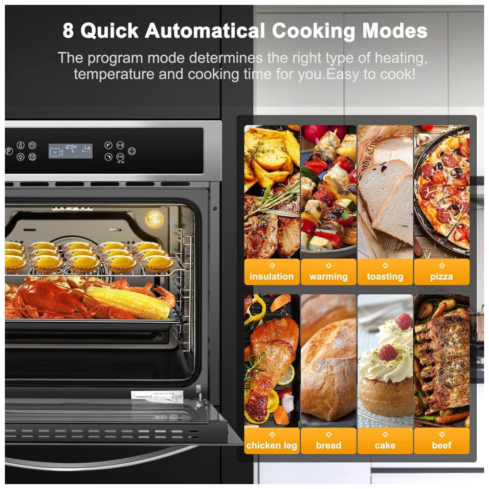 Forno Elétrico de Parede AMZCHEF com Convecção 11 Funções Receitas Automáticas 2800W Aço Inoxidável Controle por Toque