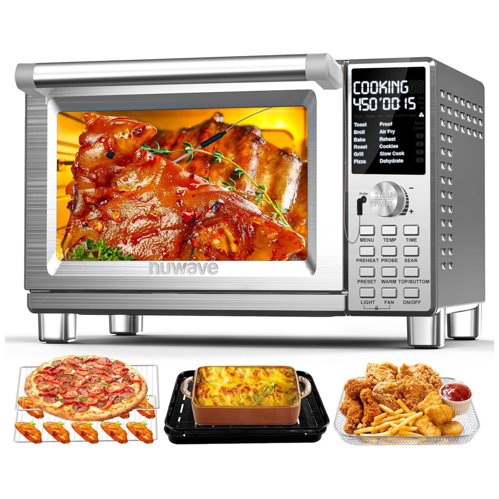 Forno Elétrico Inteligente com 112 Menus Predefinidos Capacidade de 28L Sonda Integrada e sem PFAS 110V 1700W Nuwave Prata