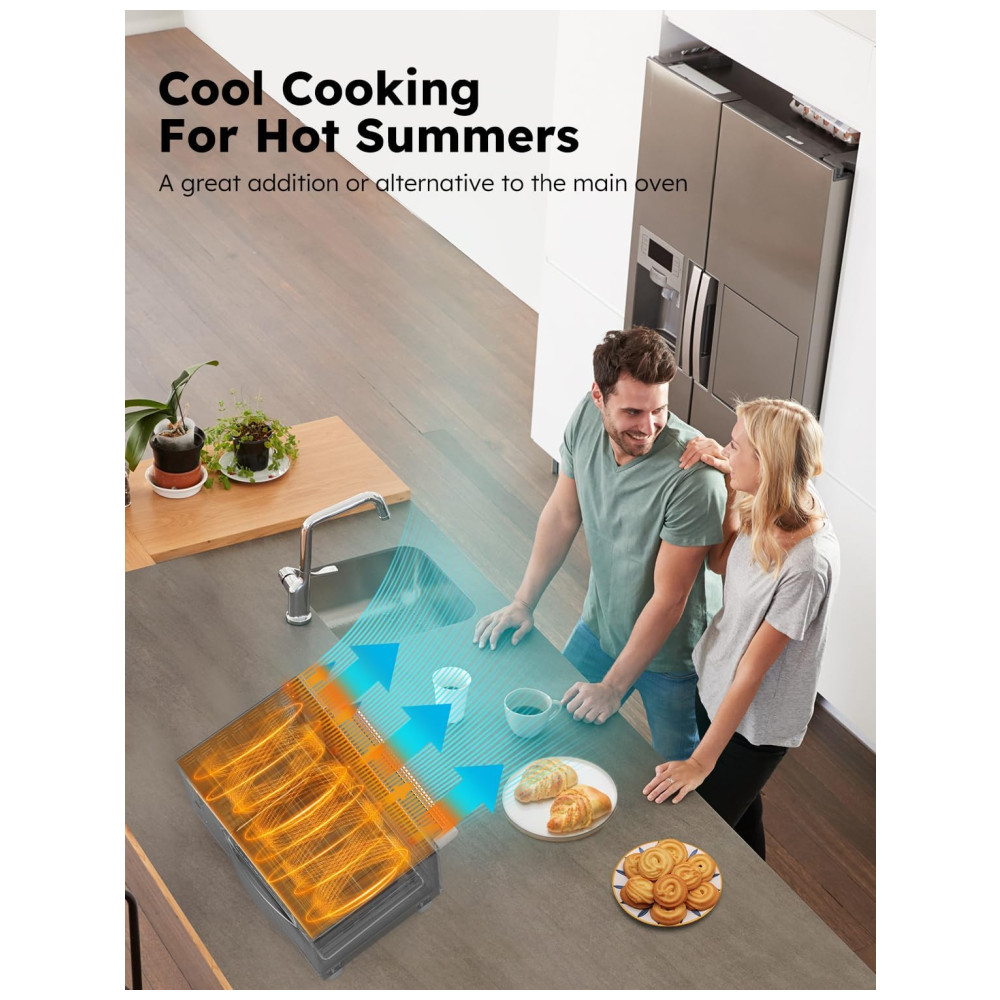 TAMANHO COMPACTO DE 28 LITROS: O Bravo XL Pro com Grill tem capacidade para acomodar facilmente duas pizzas de 33 cm (13 polegadas), frango de 4,5 kg (10 lb), assado de 2,7 kg (6 lb), e batata frita de 900 g (2 lb), tornando-o ideal para famílias grandes ou reuniões. Seu design compacto é perfeito para cozinhas pequenas, motorhomes e trailers.