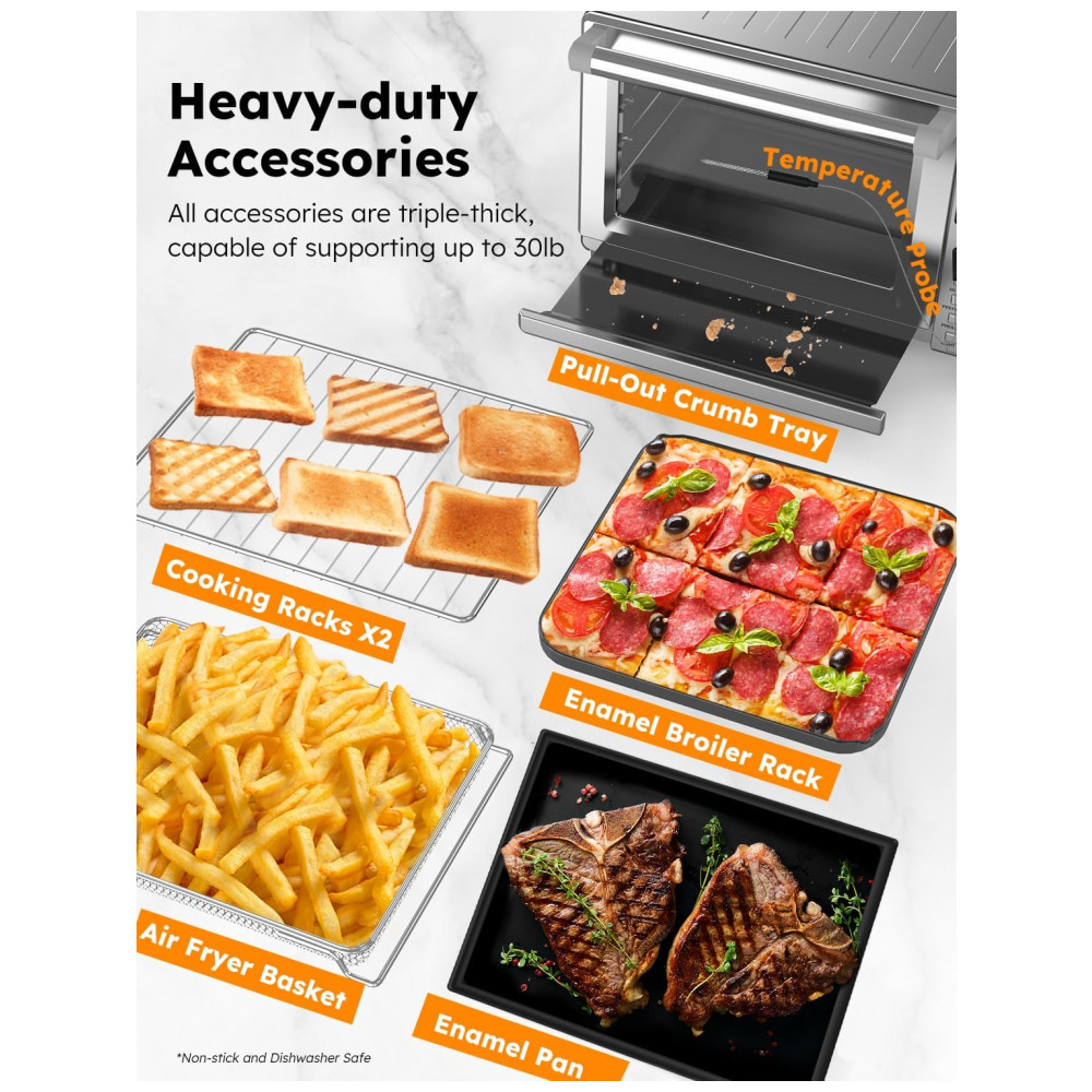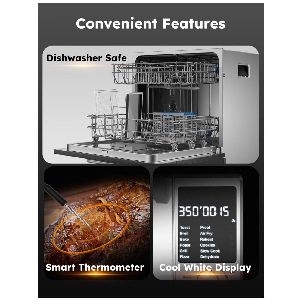 12 FUNÇÕES PRÉ-DEFINIDAS DE COZIMENTO FÁCEIS: O forno de convecção Bravo é programado com 12 funções de cozimento, incluindo fritar ao ar, tostar, grelhar, assar, cozinhar lentamente, desidratar, descongelar e muito mais. Além disso, ele possui 100 predefinições de receitas de um toque, permitindo que você cozinhe facilmente sem precisar adivinhar os tempos ou temperaturas.