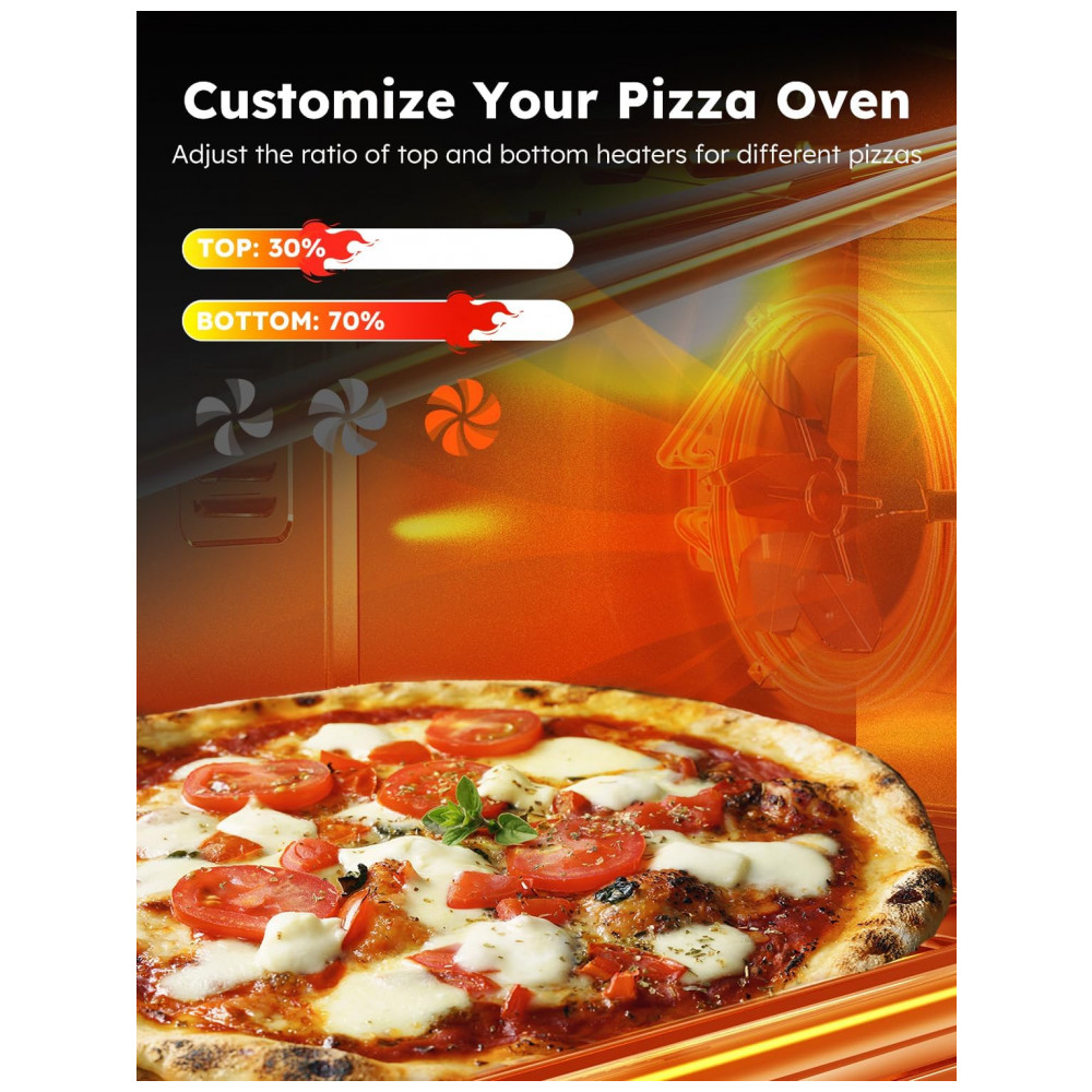 Capacidade de carga interna (exemplos): Até duas pizzas de 33 cm, 1 frango de 4,5 kg, 1 assado de 2,7 kg, cerca de 900 g de batatas fritas