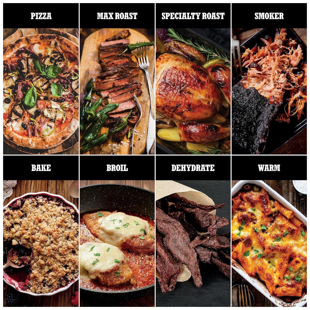 Capacidade para Receber Convidados: Prepare refeições para grandes grupos, como peru de até 5,4 kg, pernil de 4 kg, costela de 5,4 kg com vegetais, pizza de 30 cm, assados completos em assadeiras de 20×28 cm e muito mais.