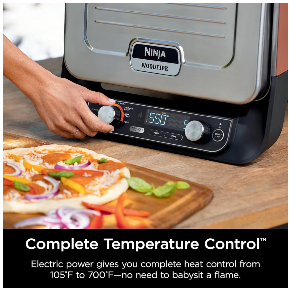 Descrição do Produto: Transforme qualquer espaço ao ar livre em uma cozinha completa com o forno de pizza Ninja Woodfire, projetado para trazer versatilidade e alta performance no preparo de diversos pratos. Com 8 funções em 1, ele permite assar, grelhar, defumar, desidratar, e muito mais, tudo com praticidade e controle de temperatura para resultados incríveis.