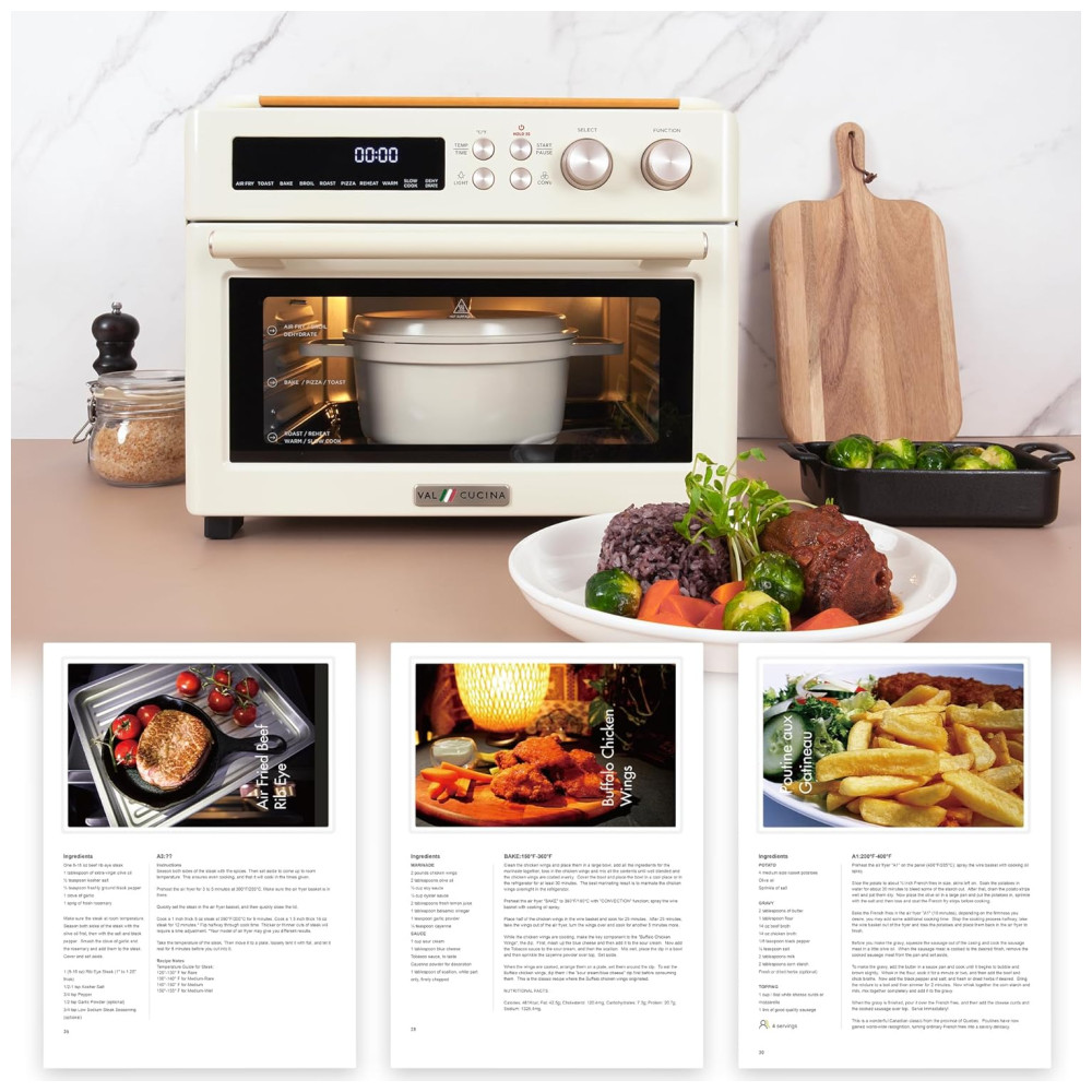 O forno Air Fryer VAL CUCINA é ideal para quem busca praticidade, saúde e sabor, oferecendo uma cozinha versátil e eficiente com um toque de elegância retrô.