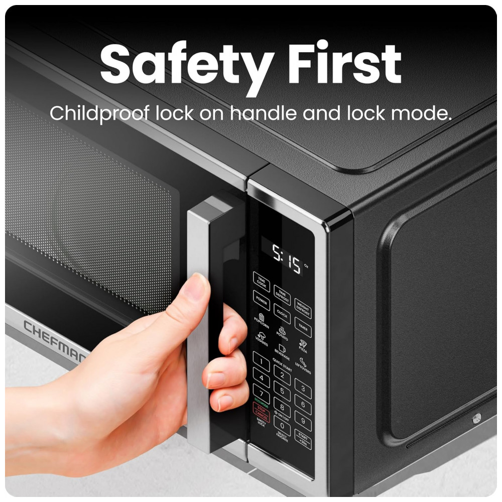 Forno micro-ondas de bancada 20L Chefman inox e preto 700W digital 10 níveis de potência 6 menus automáticos 110V