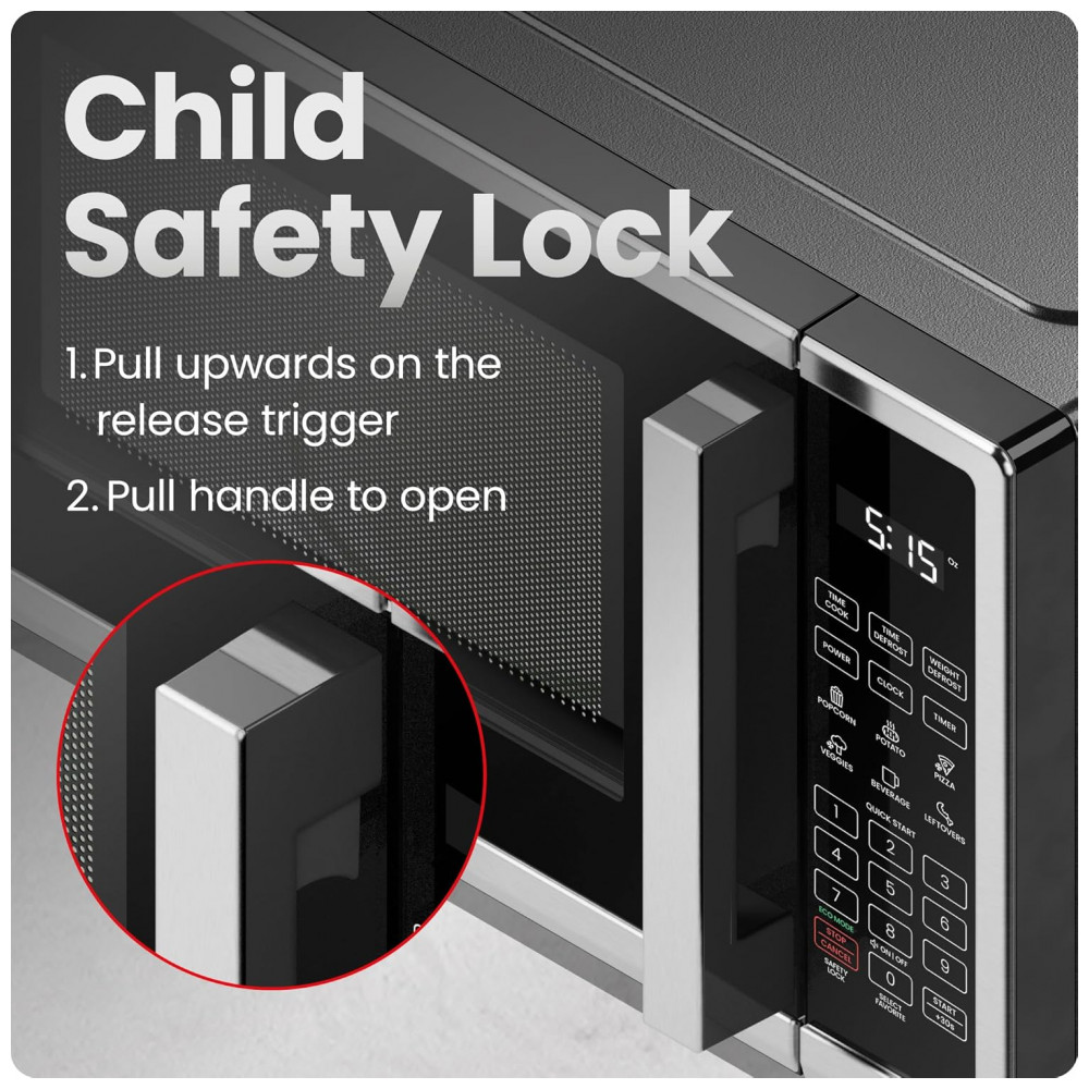 O forno micro-ondas de bancada Chefman com capacidade de aproximadamente 20 litros é indicado para aquecimento, descongelamento e preparo simples de alimentos em cozinhas residenciais, copas, dormitórios, quitinetes e pequenos escritórios. O design compacto de bancada em acabamento inox com detalhes em preto permite instalação sobre superfícies planas, ocupando pouca área útil e acomodando pratos de refeição padrão e recipientes próprios para uso em micro-ondas.