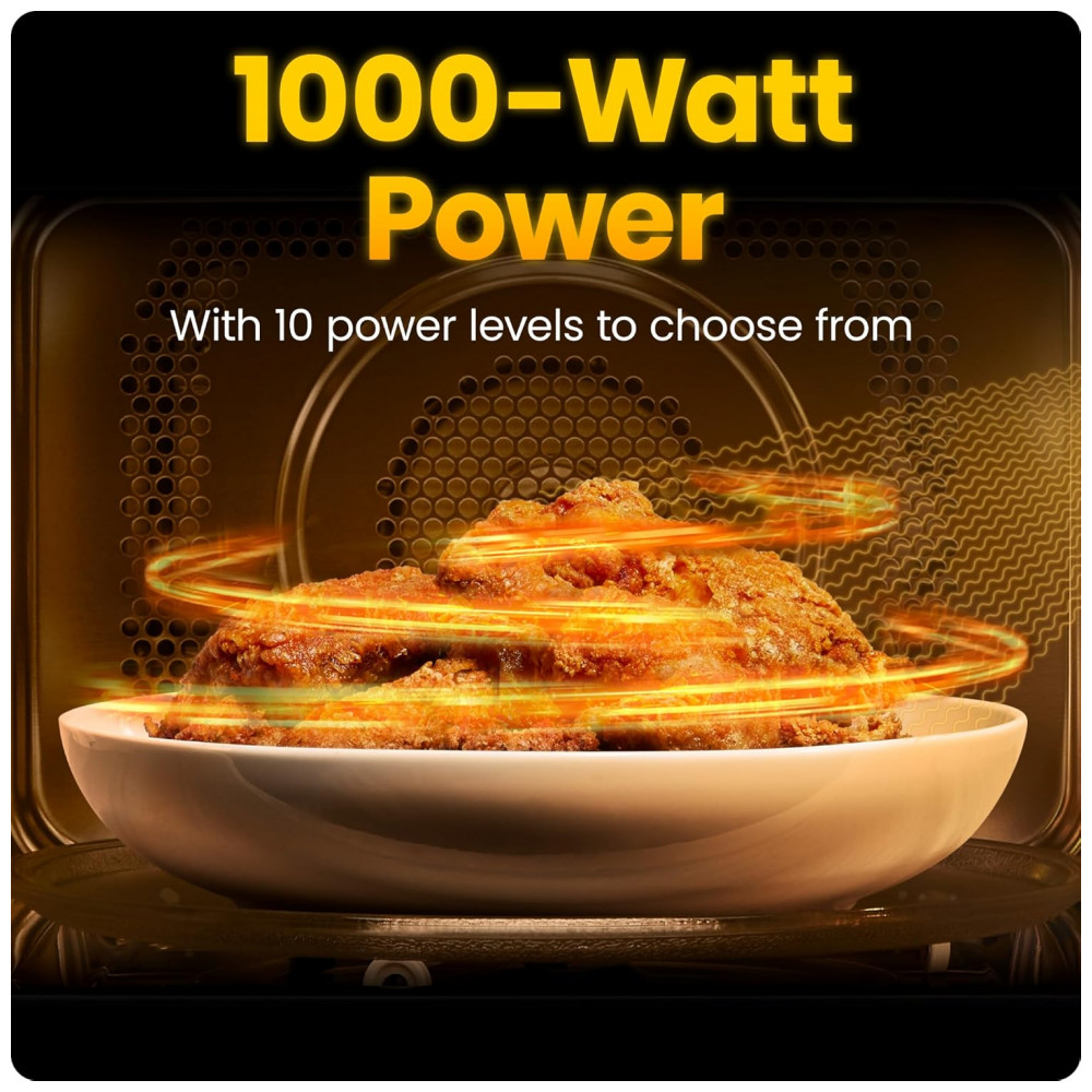 A cavidade interna possui capacidade de 31 litros, compatível com o aquecimento de porções familiares e travessas de médio porte. A potência de 1000W, associada a 10 níveis de potência, possibilita regular a intensidade do aquecimento de acordo com o tipo de alimento, desde ciclos de descongelamento até aquecimento mais intenso de refeições prontas e itens congelados.