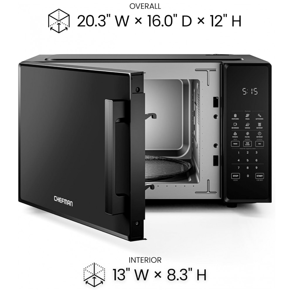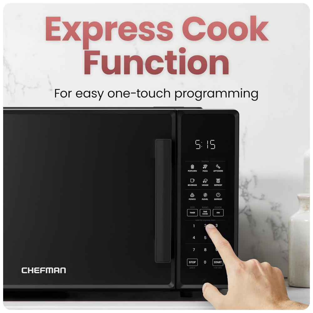 Forno micro-ondas de bancada Chefman preto 31L 1000W digital 10 níveis de potência 6 menus automáticos 110V