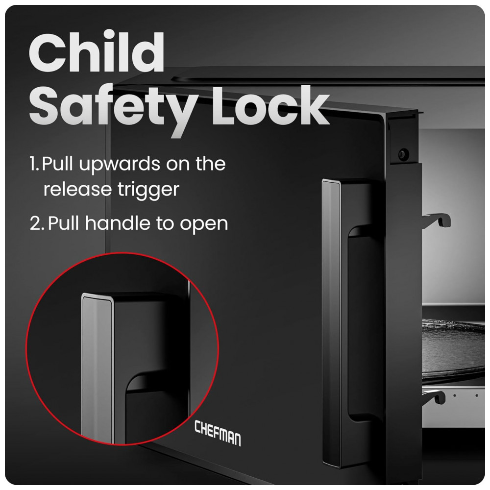 O forno micro-ondas de bancada Chefman de 31 litros foi desenvolvido para aquecimento, descongelamento e preparo simples de alimentos em cozinhas residenciais, copas, áreas de apoio e pequenos escritórios. A estrutura compacta para uso em bancada, com acabamento na cor preta, permite instalação em diferentes configurações de mobiliário, mantendo capacidade interna adequada para pratos de refeição, recipientes próprios para micro-ondas e utensílios de uso diário.