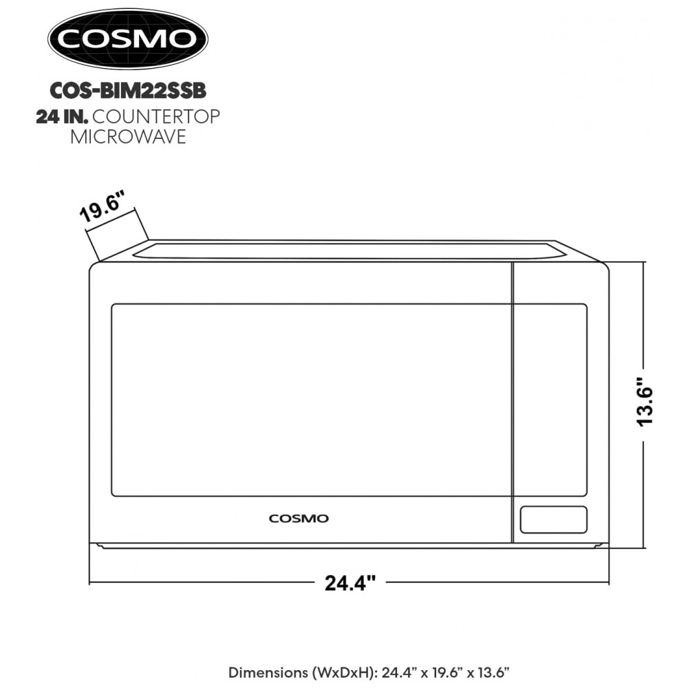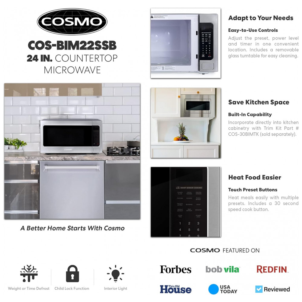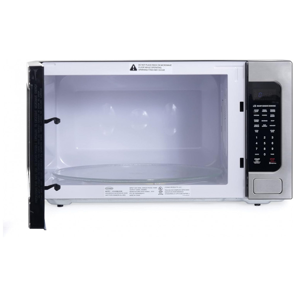 Forno micro-ondas de bancada e embutir Cosmo inox 62L 1200W digital 10 níveis de potência sensor de cozimento prato 41 cm 110V