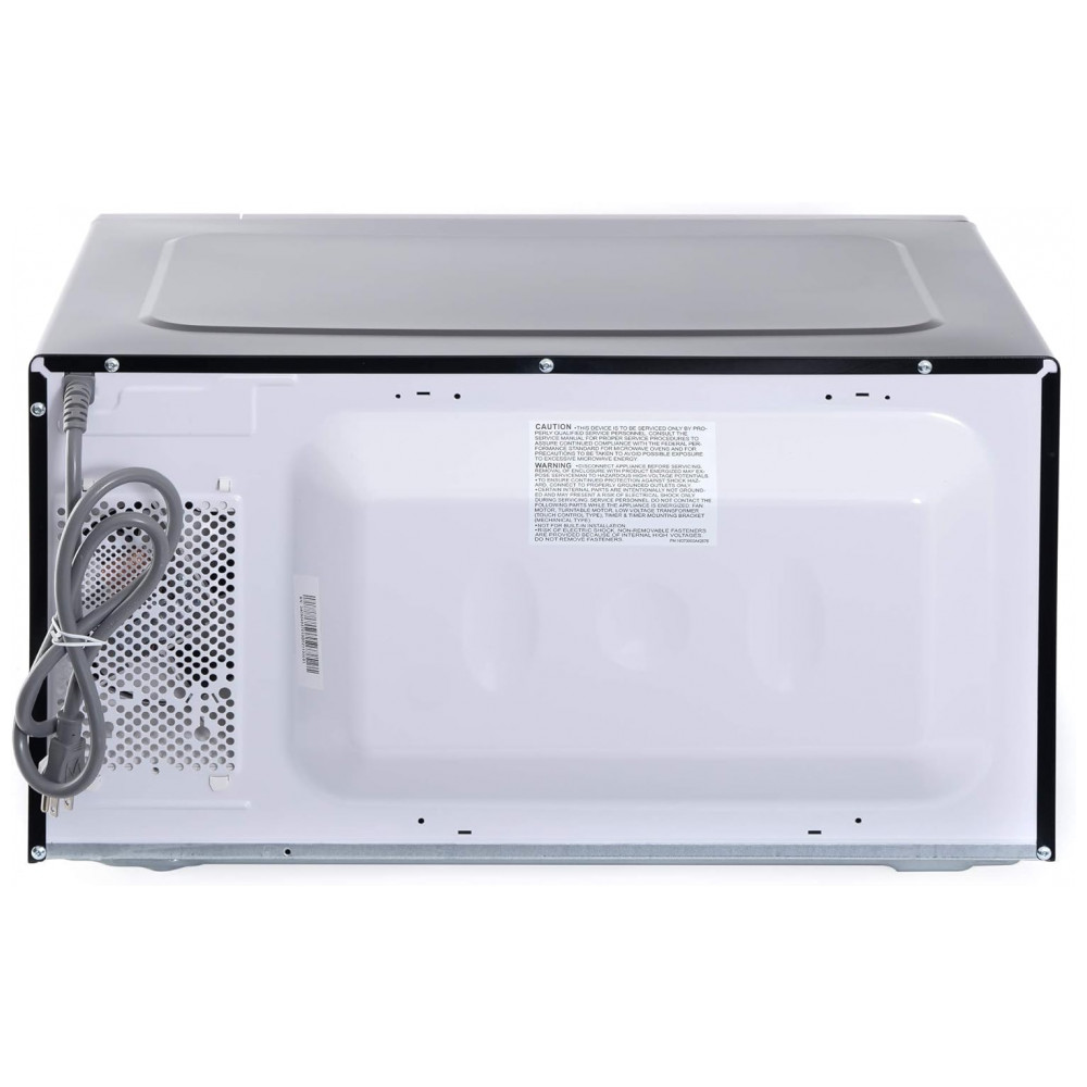 A cavidade interna possui volume de 62 litros, obtido a partir de capacidade de 2,2 pés cúbicos, adequada para travessas familiares, pratos de grande diâmetro e recipientes de maior volume utilizados no dia a dia. A potência de 1200W com 10 níveis de potência possibilita ajustar a intensidade do aquecimento conforme o tipo de alimento, atendendo desde ciclos mais suaves até aquecimento intenso para refeições prontas e congelados.