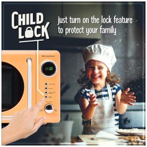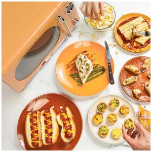 Forno micro-ondas de bancada Nostalgia retrô laranja 700W display digital LED 12 programas trava de segurança infantil 20L 110V
