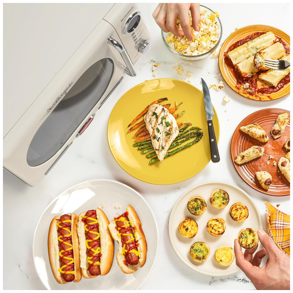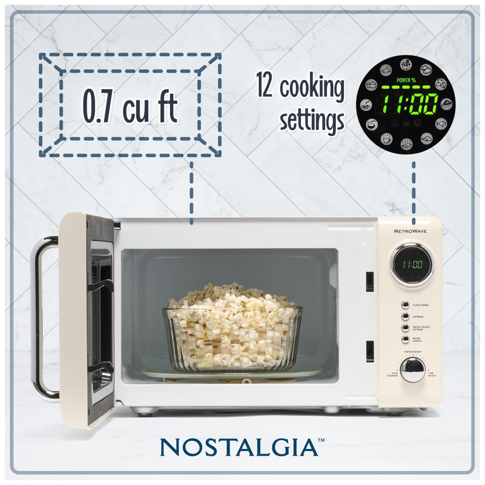 Forno micro-ondas de bancada Nostalgia retrô marfim 700W display digital LED 12 programas 20L modelo NRMO7IVY6A 110V
