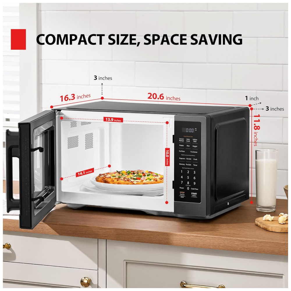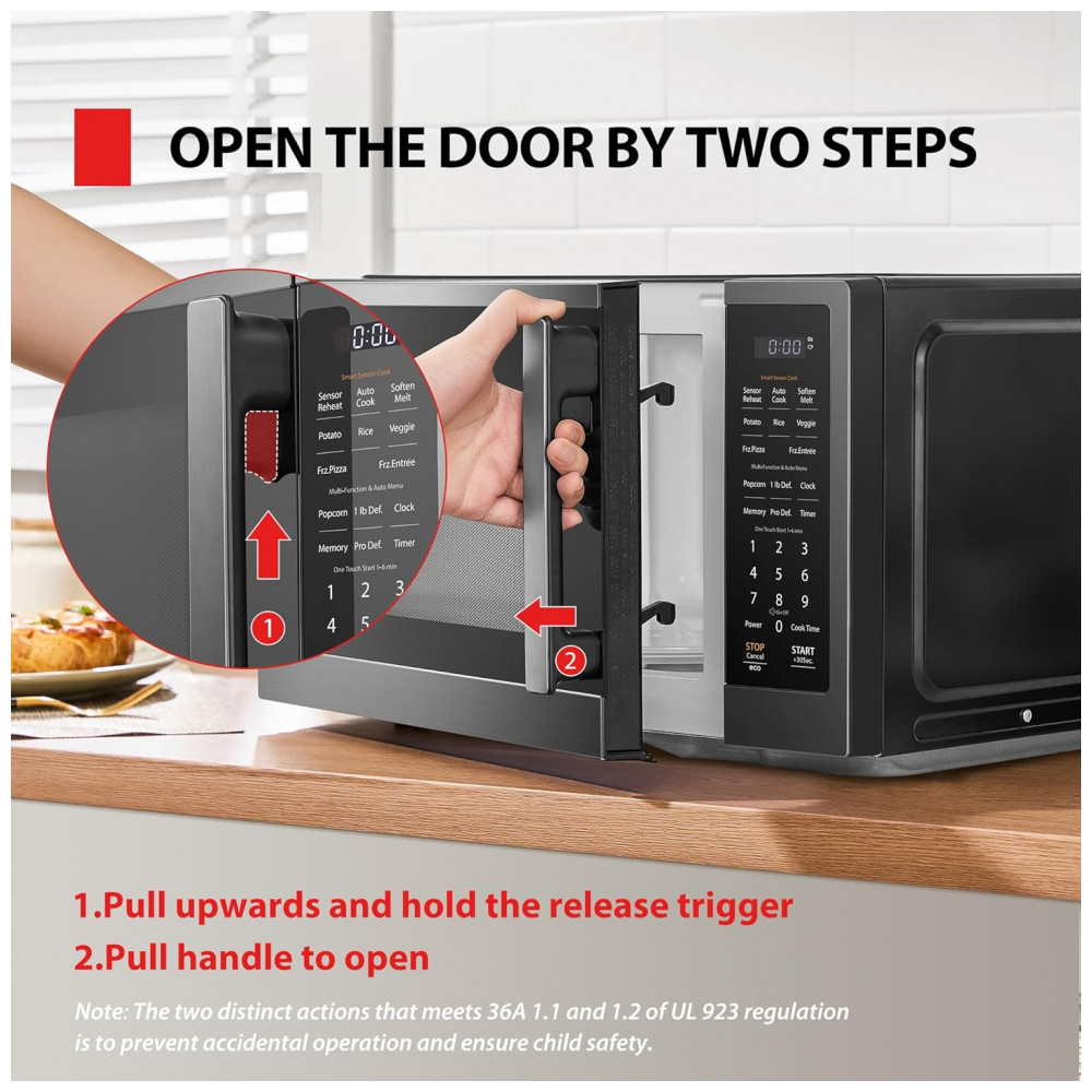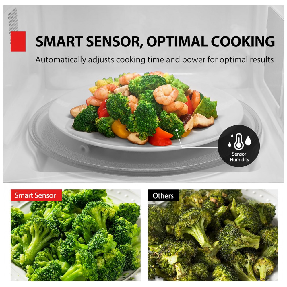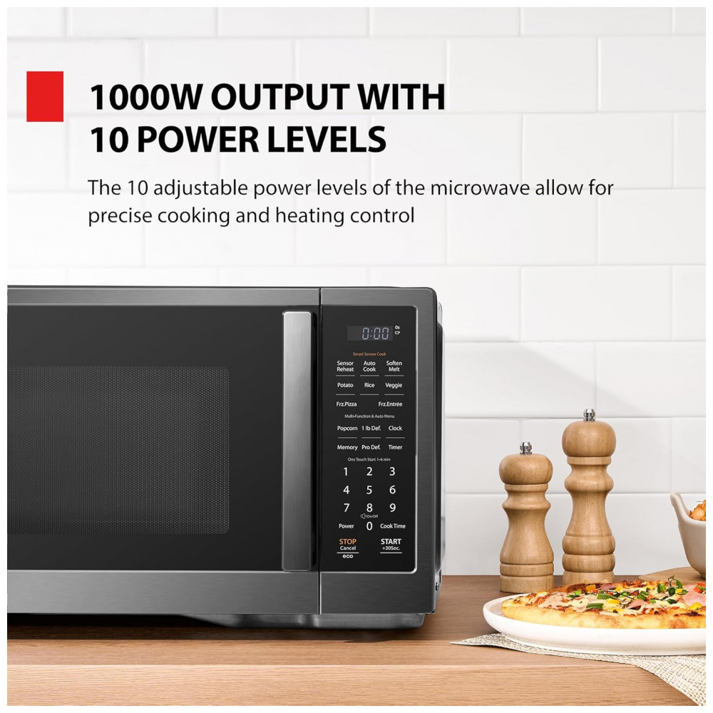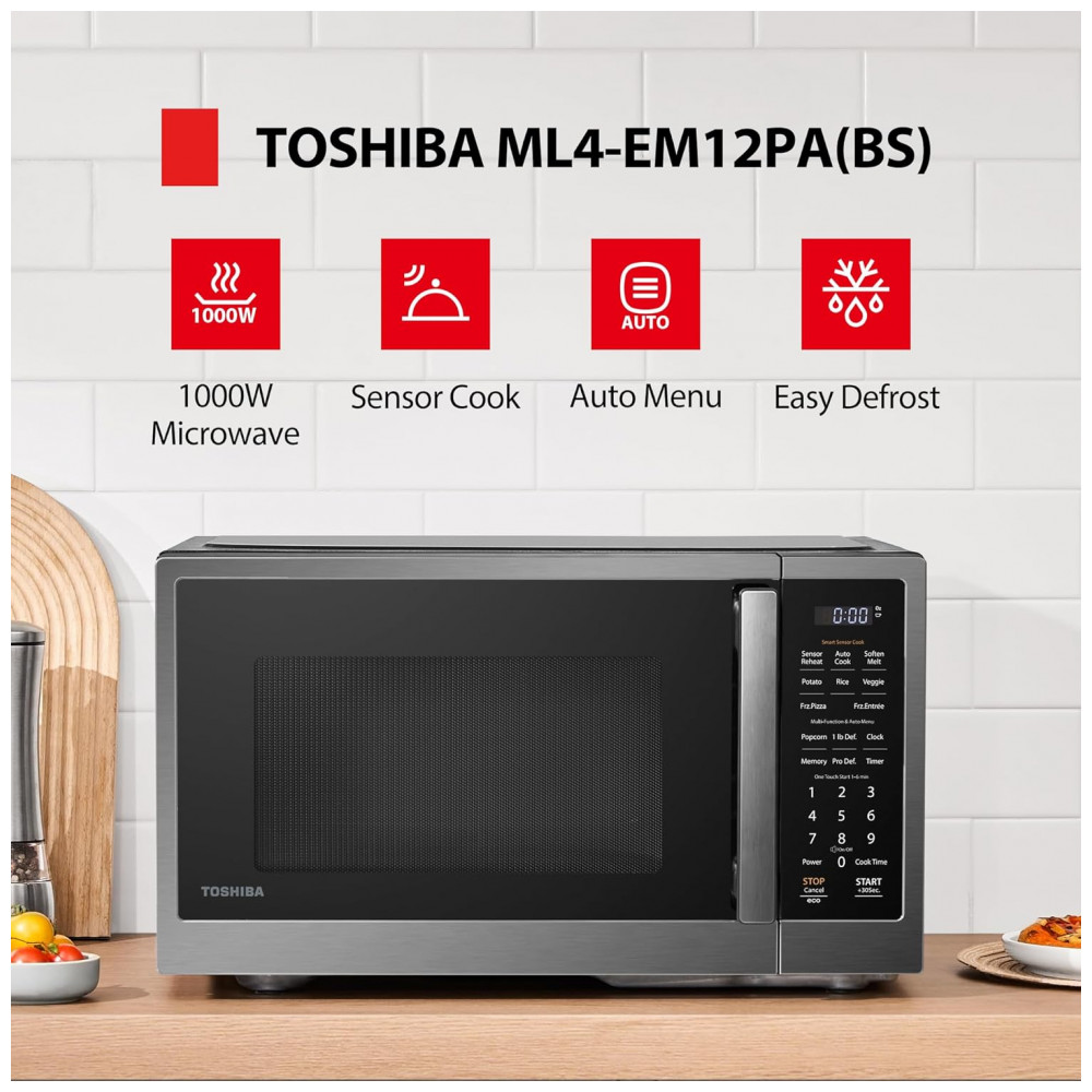 O Forno Micro-ondas de Bancada TOSHIBA ML4EM12PABS é essencial na cozinha, com design elegante e funcionalidades inteligentes. Com Sensor Inteligente, 13 Menus Automáticos, Função Mudo, 33,98 litros e Prato Giratório de 31,5 cm, este micro-ondas compacto de aço inoxidável preto possui dimensões externas de 52,3×41,4×30 cm (LxPxA) e dimensões internas de 35,3×35,8×25,4 cm (LxPxA), ideal para economizar espaço em cozinhas, dormitórios ou apartamentos. Com 10 níveis de potência e 13 menus pré-definidos, este micro-ondas oferece flexibilidade culinária com potência de saída de 1000W e potência de entrada de 1600W. Descongele alimentos por peso ou tempo, ative o modo mudo para silenciar os sons e salve configurações de pratos com facilidade. Com design moderno em aço inoxidável preto e prato giratório de 31,5 cm, este micro-ondas é perfeito para qualquer decoração de cozinha. Com trava de segurança infantil de dois passos, evitando o uso acidental por crianças.