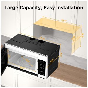 Com um design espaçoso e interior generoso, este forno micro-ondas de 48,14 litros e 1000 Watts será seu sous chef principal em qualquer refeição ou aventura culinária. Possui 10 níveis de cozimento, 6 menus rápidos, cozimento em múltiplos estágios e ventilação de 300 CFM com luz embutida. Seja para pipoca, bebidas, derreter, reaquecer ou descongelar, este micro-ondas sobre o fogão oferece praticidade e eficiência.