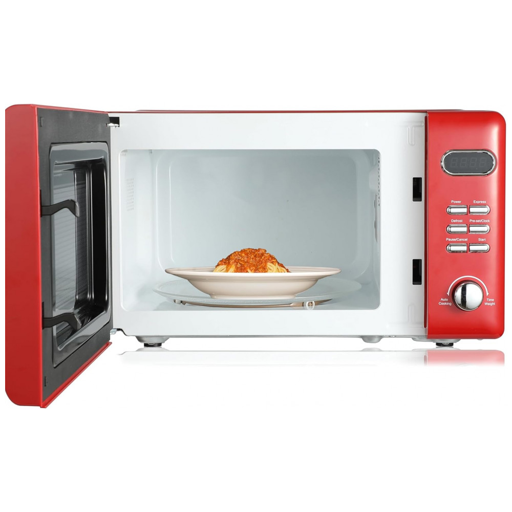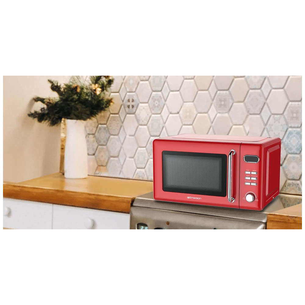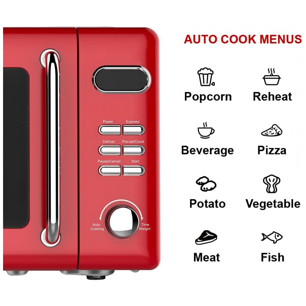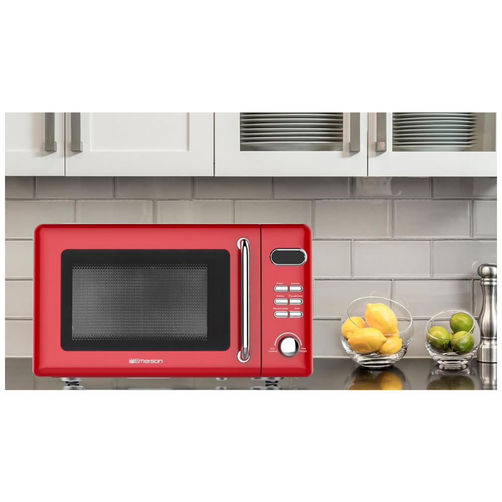 Forno Micro-ondas Retrô de Bancada 20L Emerson Vermelho Retrô 700W 5 Níveis 8 Menus Automáticos Prato de Vidro Trava de Segurança 110V