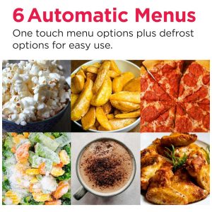 Funções de cozimento: Cozimento rápido, menus de cozimento com 1 toque, programas de potência e timer