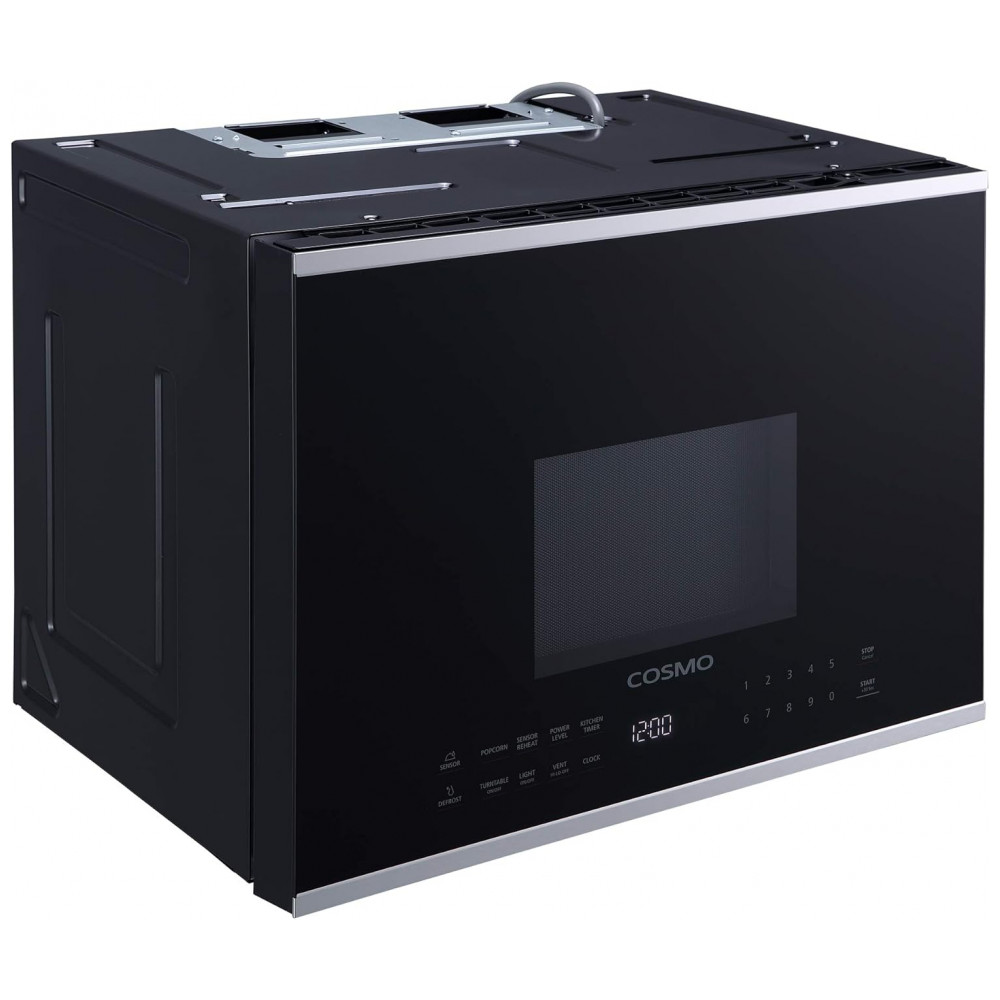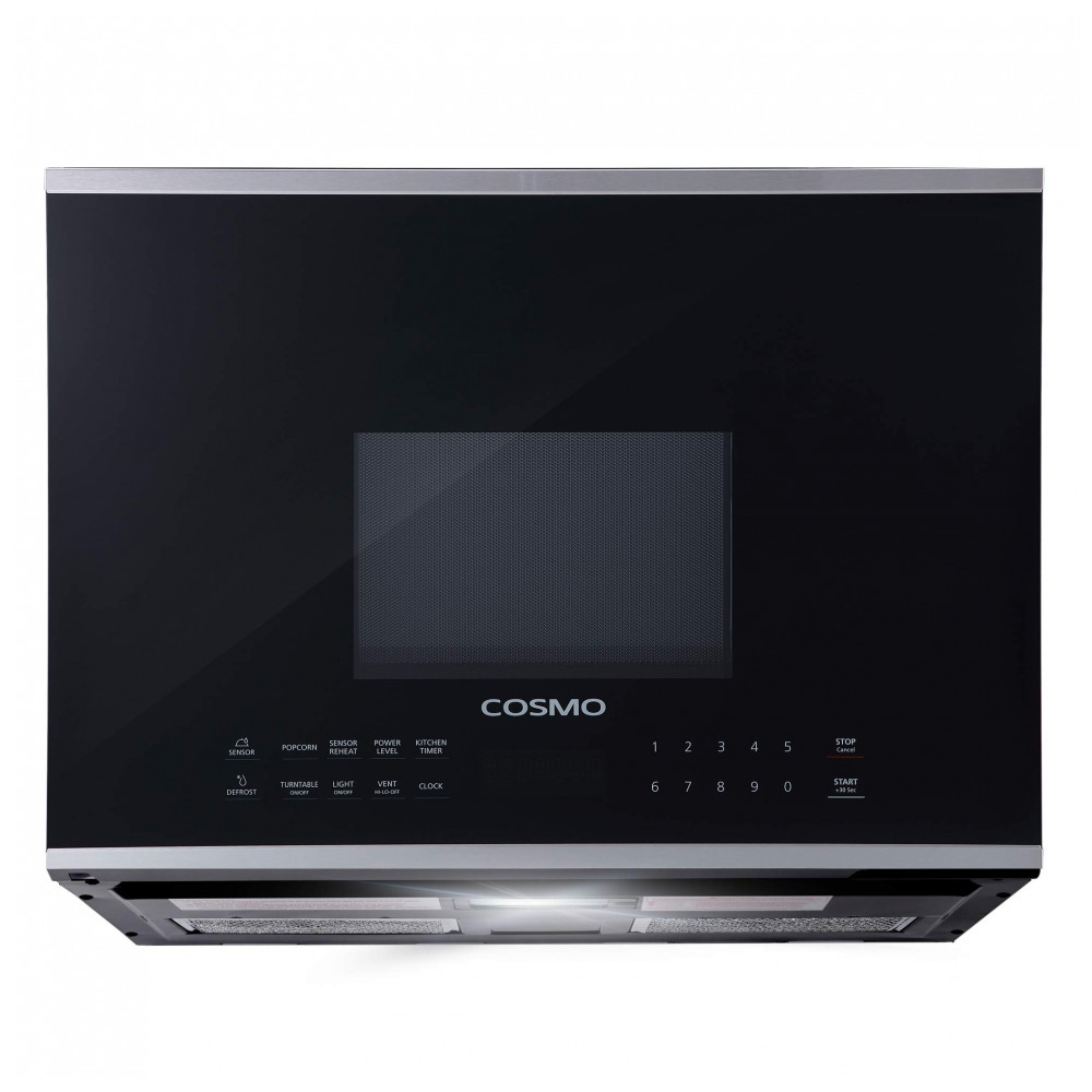 Forno micro-ondas sobre fogão Cosmo inox e preto 38L 1000W 10 níveis de potência sensor de cozimento exaustor integrado 110V