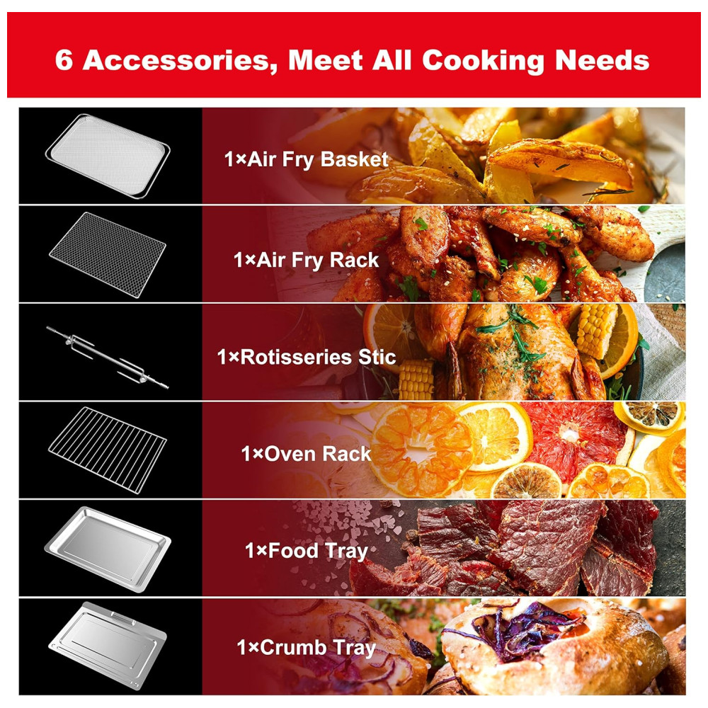 Nome do Modelo: Forno Elétrico Digital Combo 8-em-1 com Air Fry e Rotisserie.