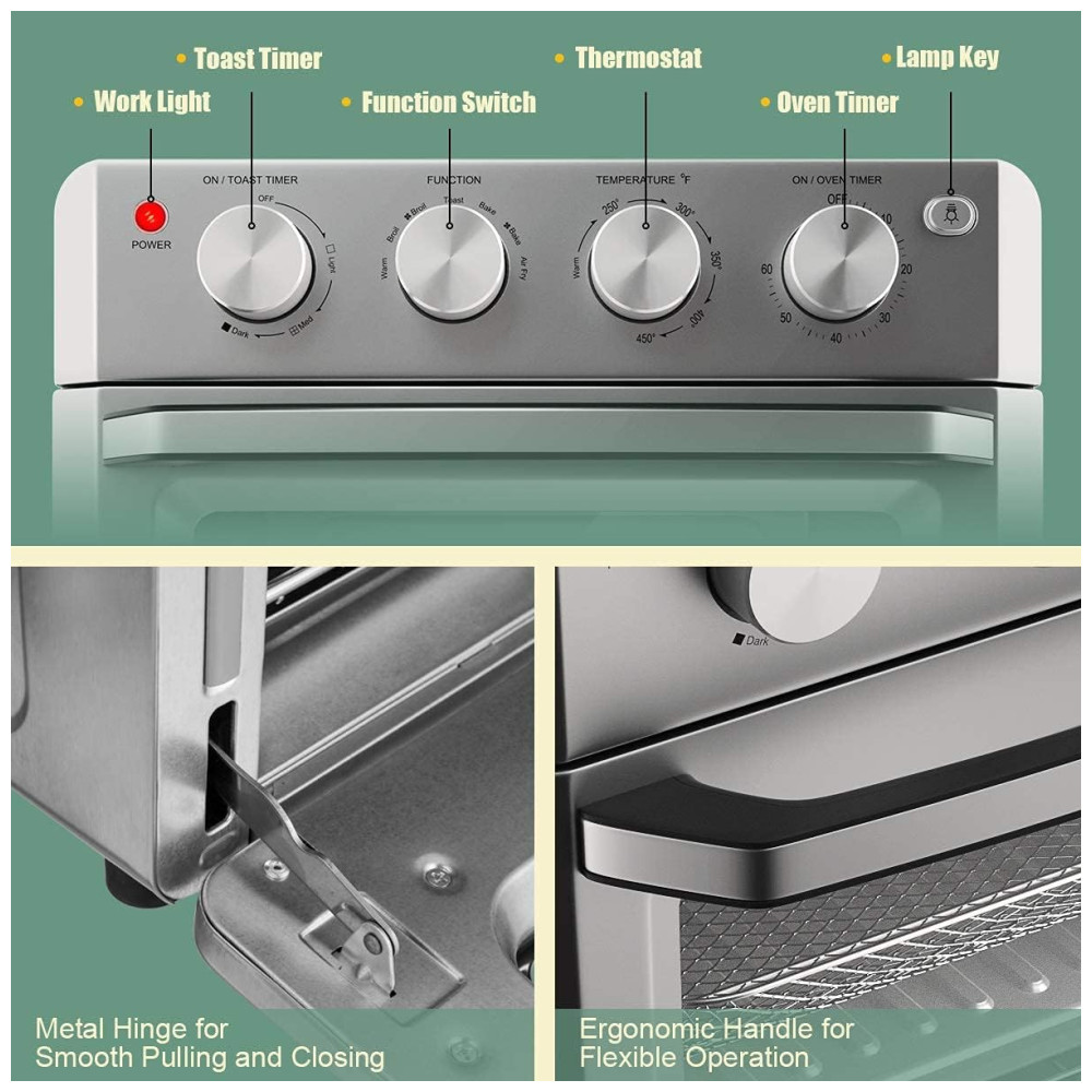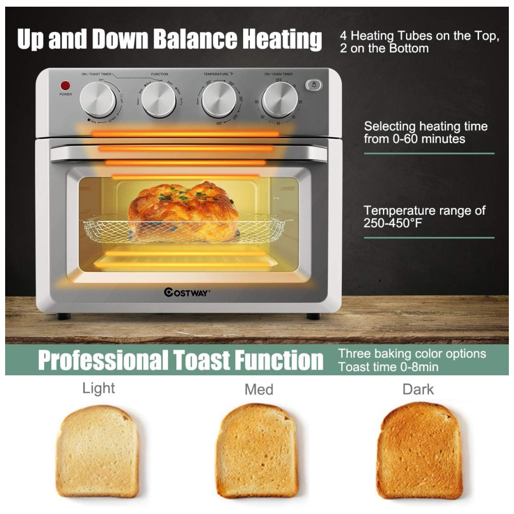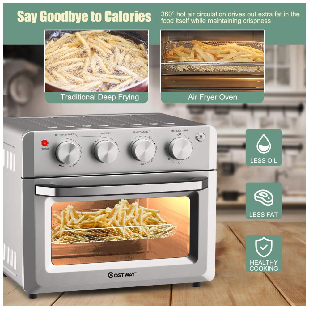 O Forno Air Fryer COSTWAY TO5712A combina versatilidade, eficiência e design moderno para transformar sua cozinha. Com capacidade de 18 litros e 7 funções de preparo, ele é perfeito para atender às suas necessidades culinárias, oferecendo pratos saudáveis e saborosos. Seu acabamento em aço inoxidável e controles intuitivos garantem praticidade e sofisticação no uso diário. Ideal para quem busca um equipamento funcional e elegante para a cozinha!