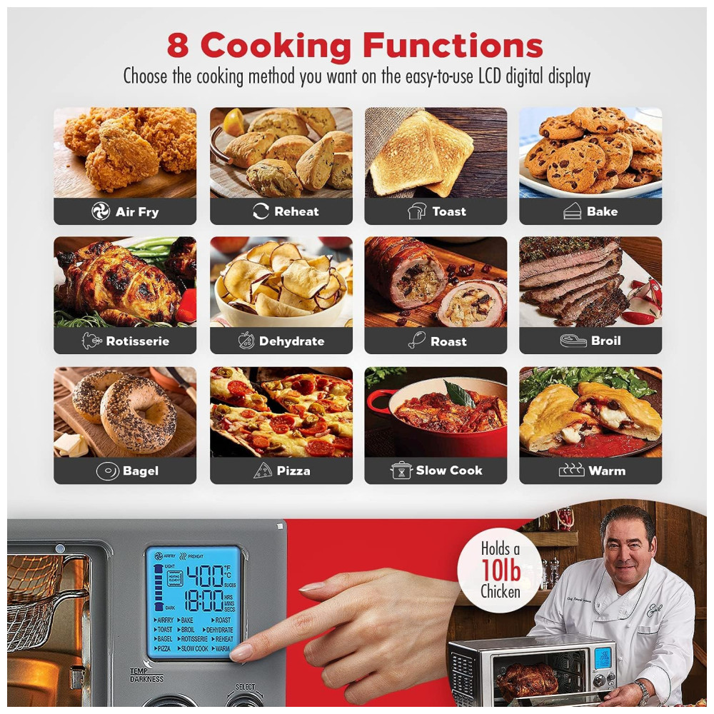 Transforme sua experiência culinária com o Forno Air Fryer Emeril 9-em-1, um eletrodoméstico completo que substitui seu forno convencional de bancada e entrega resultados profissionais com facilidade. Com sua avançada tecnologia e design elegante em aço inoxidável, este forno é o aliado perfeito para preparar pratos deliciosos e saudáveis.