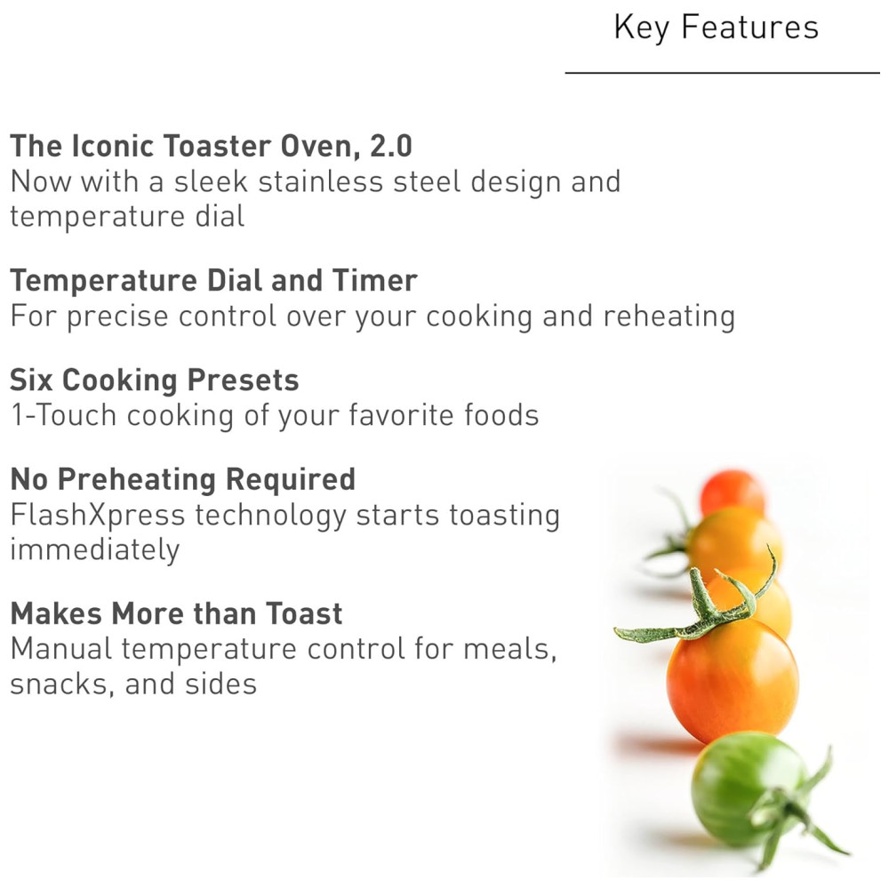 O forno torradeira mais renomado da categoria, que está há 25 anos no mercado, agora recebe uma edição especial de aniversário com melhorias significativas. Pronto para preparar alimentos perfeitamente torrados, assados, dourados e reaquecidos, este forno é ideal para uma nova geração que deseja refeições deliciosas e saudáveis, preparadas rapidamente.