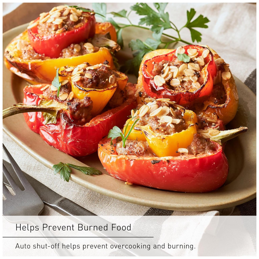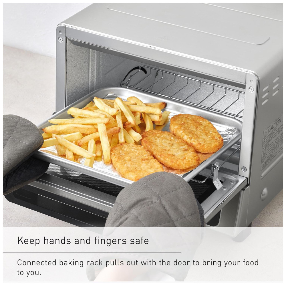 Com seis funções de cozimento predefinidas, este forno torradeira torna o preparo dos seus pratos favoritos mais rápido e fácil. Prepare torradas, waffles, pãezinhos, pizzas, ou reaqueça rapidamente e frite batatas com a praticidade dos controles simples de 1 toque. E o melhor: você pode colocar os alimentos diretamente no forno assim que ele for ligado, sem precisar esperar pelo pré-aquecimento.