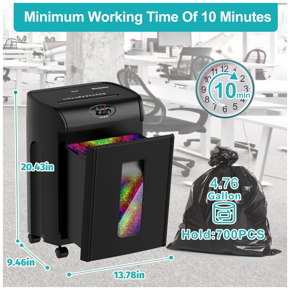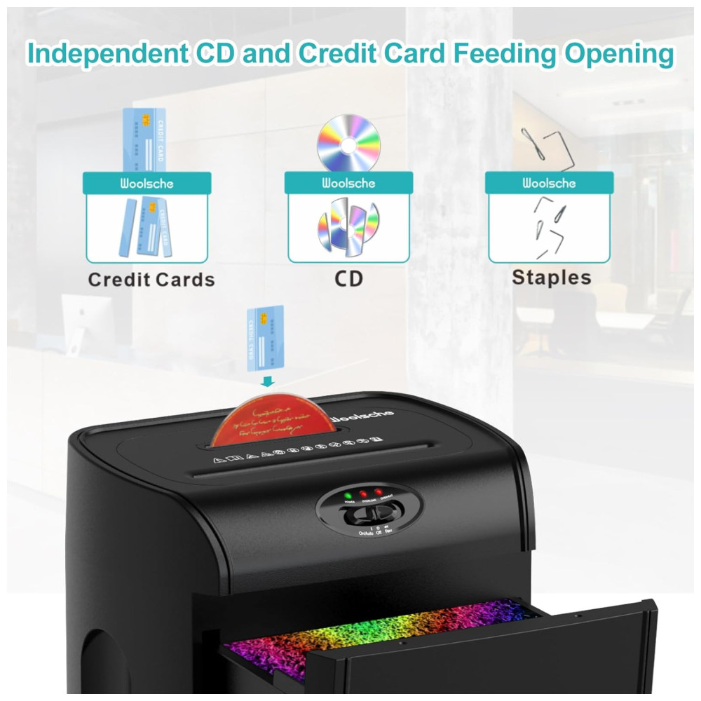 Fragmentadora de Papel 10 Folhas e Cartões com Cesta Removível 3 Modos 110V Woolsche Preta