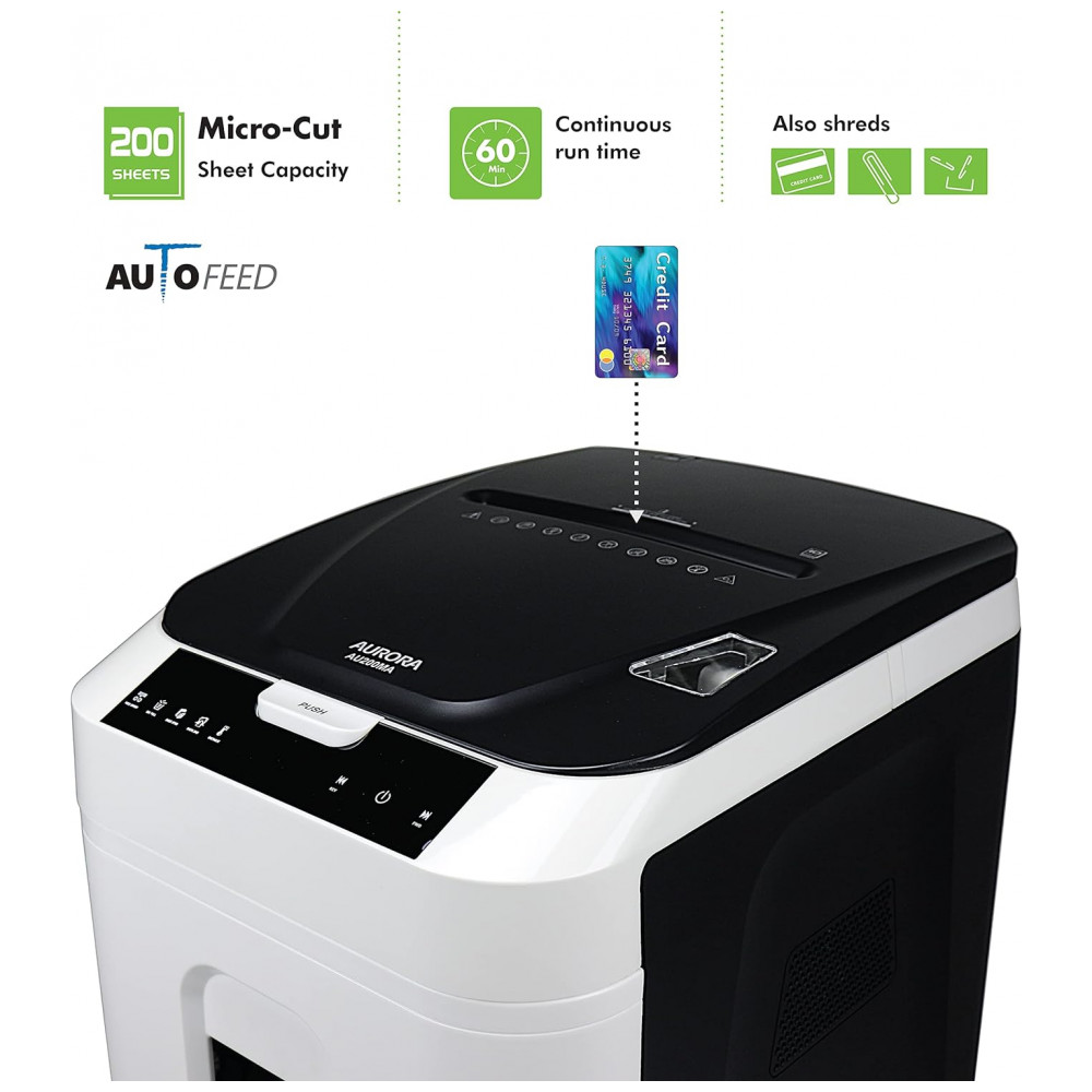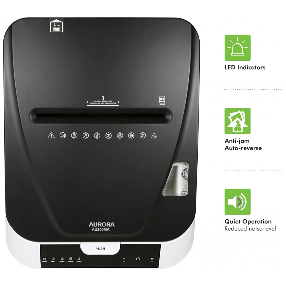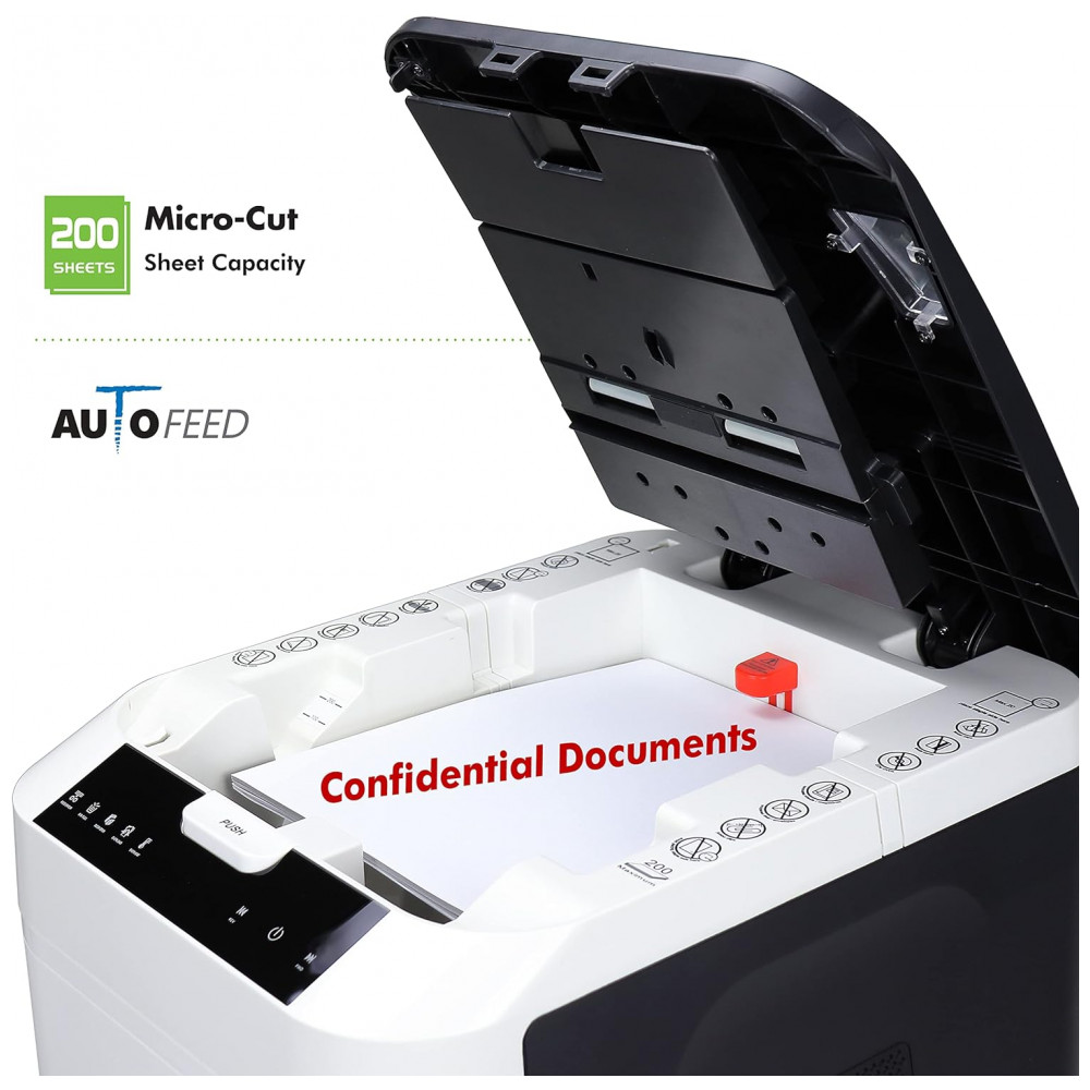 Recursos de trituração automática para eficiência ideal, trituração automática máxima de 200 folhas e capacidade de trituração manual de 10 folhas. Tensão: 120 volts 54,43 kgf, cm. Frequência: 60 Hz.