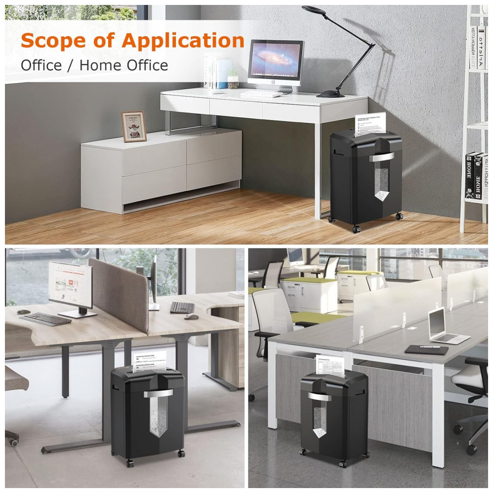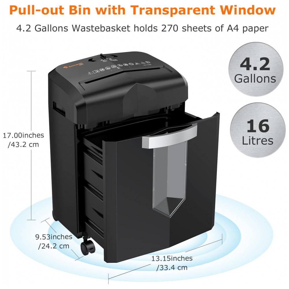 Triturador de Papel Bonsaii 12 Folhas Corte Micro 60 Minutos Contínuos para Casa/Escritório 16 litros Preta