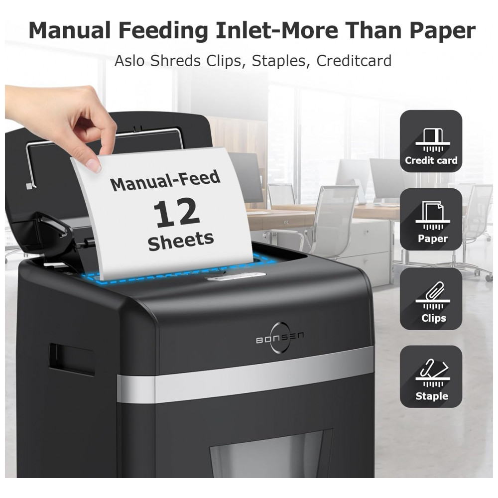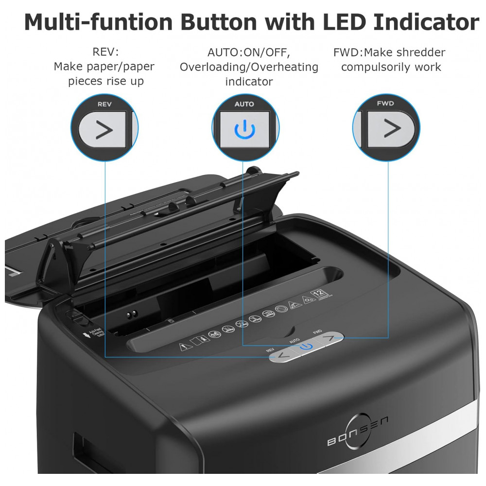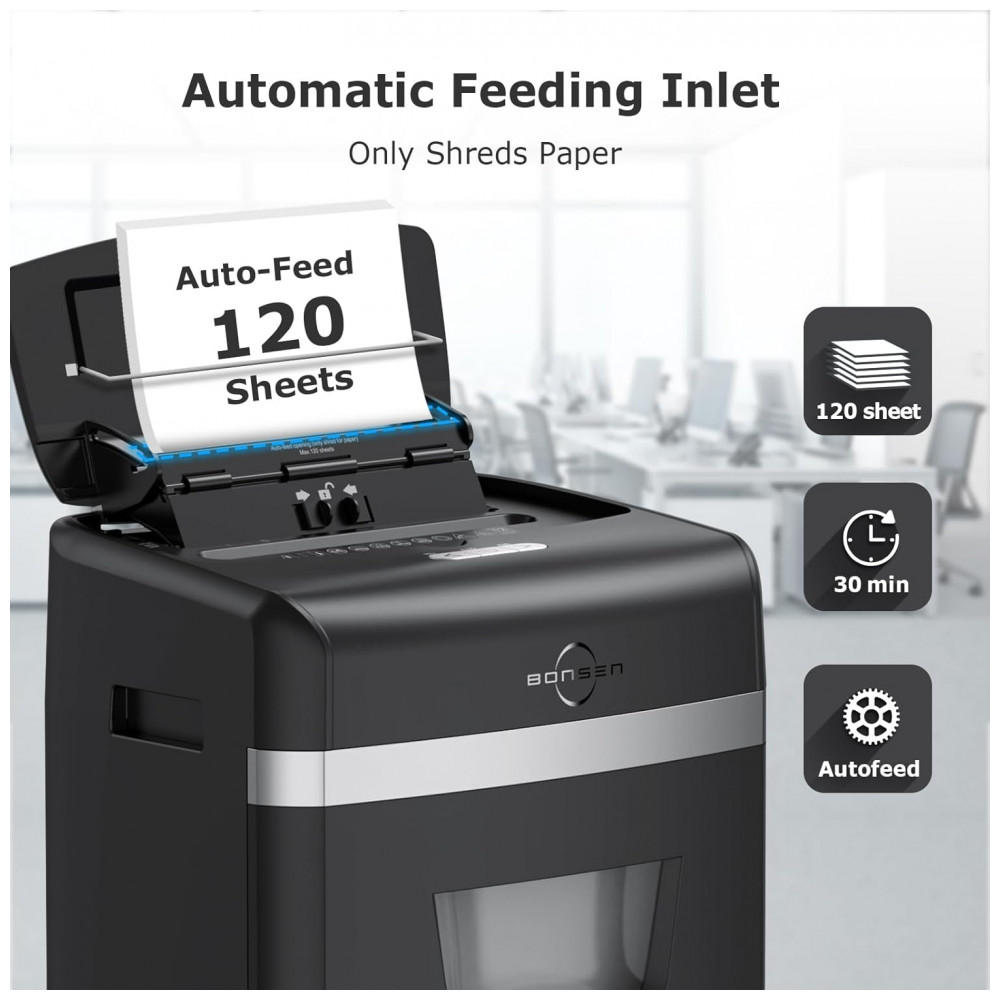 Triturador de Papel BONSEN para Escritório 120 Folhas Corte Micro Novo Modelo Automação Nível de Segurança P4
