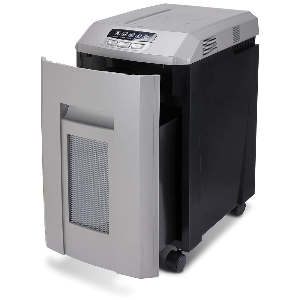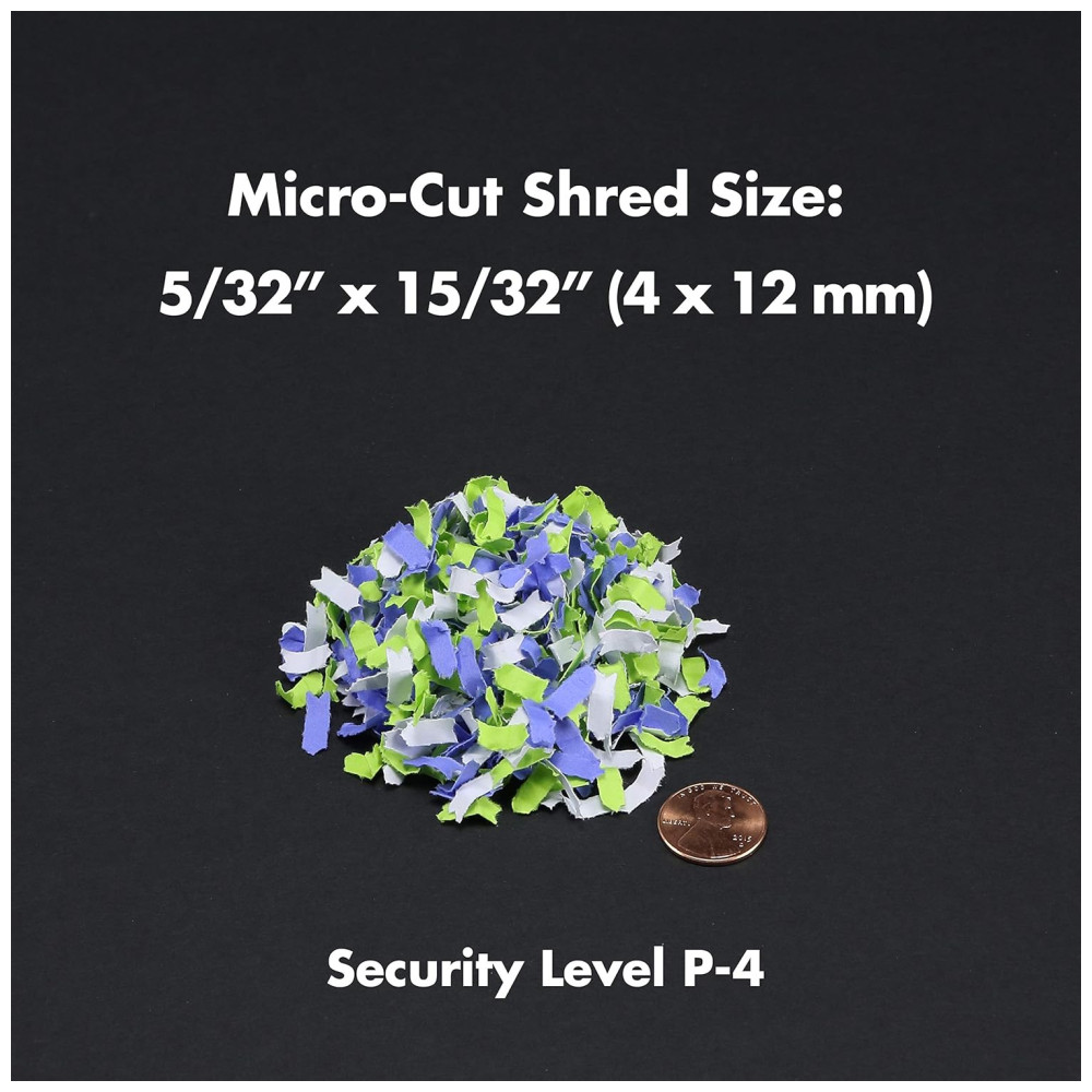 Destrói papel, CDs, DVDs, cartões de crédito em pedaços pequenos 4 por 12 milimitros, nível de segurança P 4.