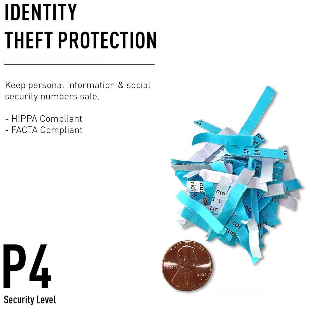 PROTEJA SUAS INFORMAÇÕES P 4: O nível de segurança transversal está em conformidade com HIPAA e FACTA e é aceito federalmente para proteger informações contra roubo de identidade. Nosso triturador industrial pode realizar trabalhos grandes ou pequenos com facilidade.