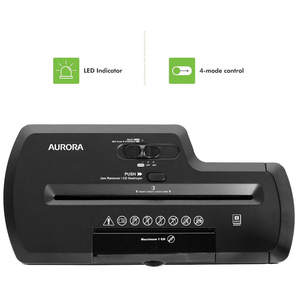Fragmentadora de Papel e Cartões Profissional sem Lixeira 8 Folhas Corte em Tiras 110V Aurora Preto
