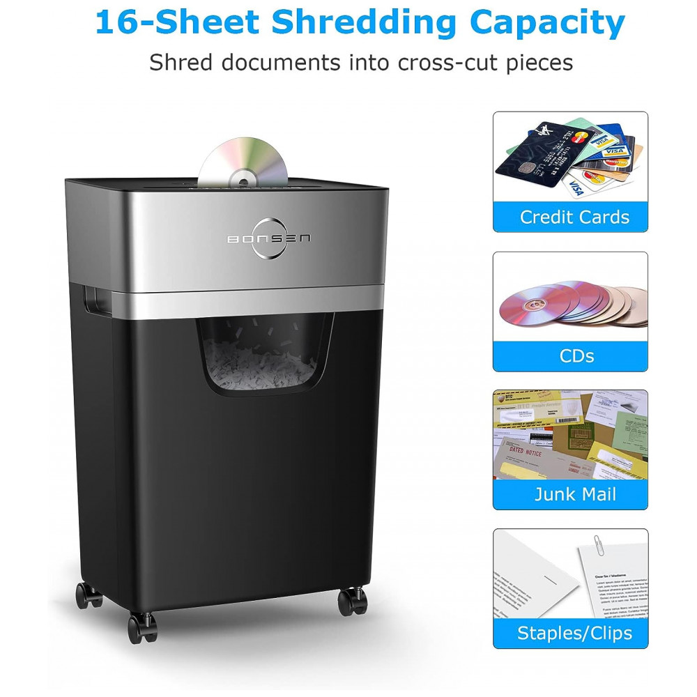 Fragmentadora de Papel e CD com Corte Cruzado 16 Folhas Silenciosa 110V BONSEN S3102 Preta