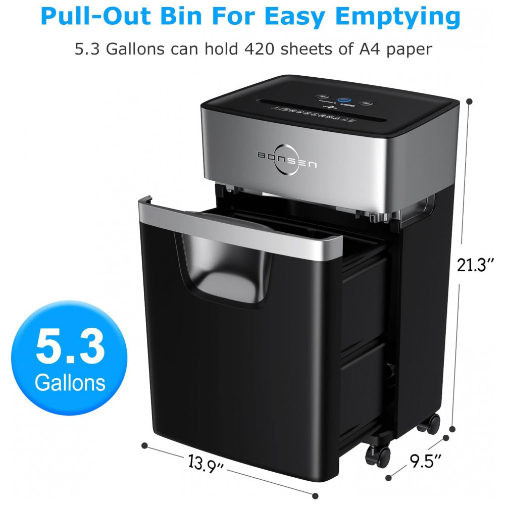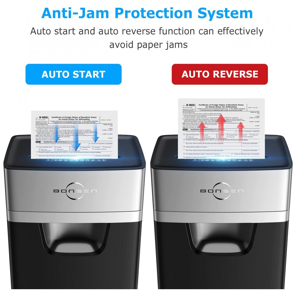 Tempo de execução de 60 minutos: Adotando sistema de resfriamento patenteado, operação contínua por 60 minutos sem parar, o que pode destruir cerca de 4840 folhas de papel. Triturador de papel profissional para uso em escritórios e escritórios domésticos.