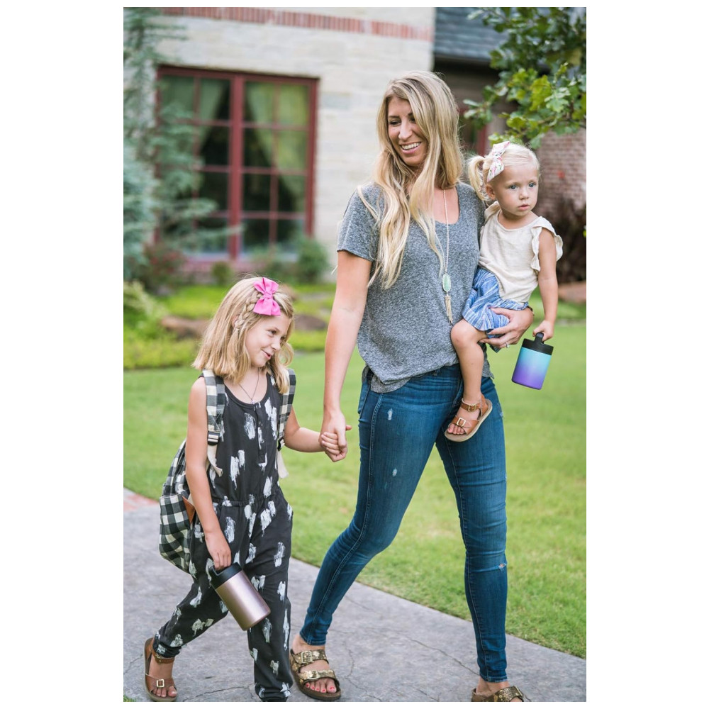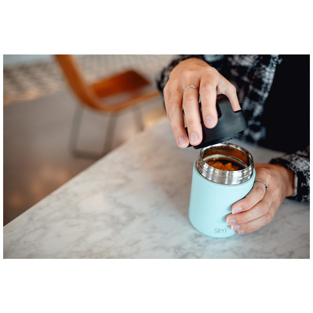 A jarra de alimentos Provision vem com uma tampa de alça isolada e lavável na máquina de lavar louça, feita para fácil transporte em movimento.