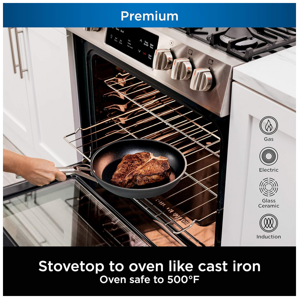 FORNO Vá facilmente do fogão ao forno para terminar de cozinhar carnes, coberturas marrons ou assar como você pode em ferro fundido. Tampas, alças e revestimento antiaderente são todos s para fornos de até 260C