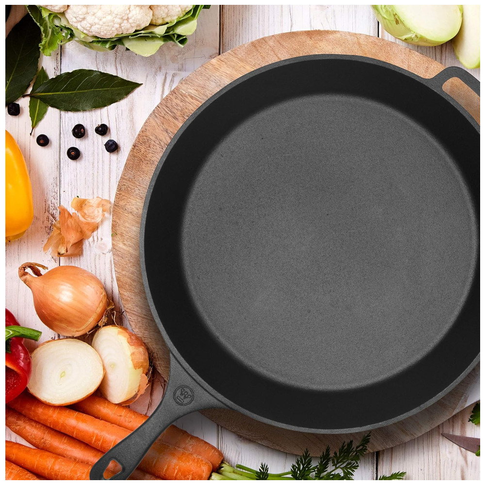 MESMO DISTRIBUIÇÃO DE CALOR Esta frigideira de ferro fundido temperada oferece distribuição uniforme de calor e excelente retenção de calor para todas as suas deliciosas receitas.