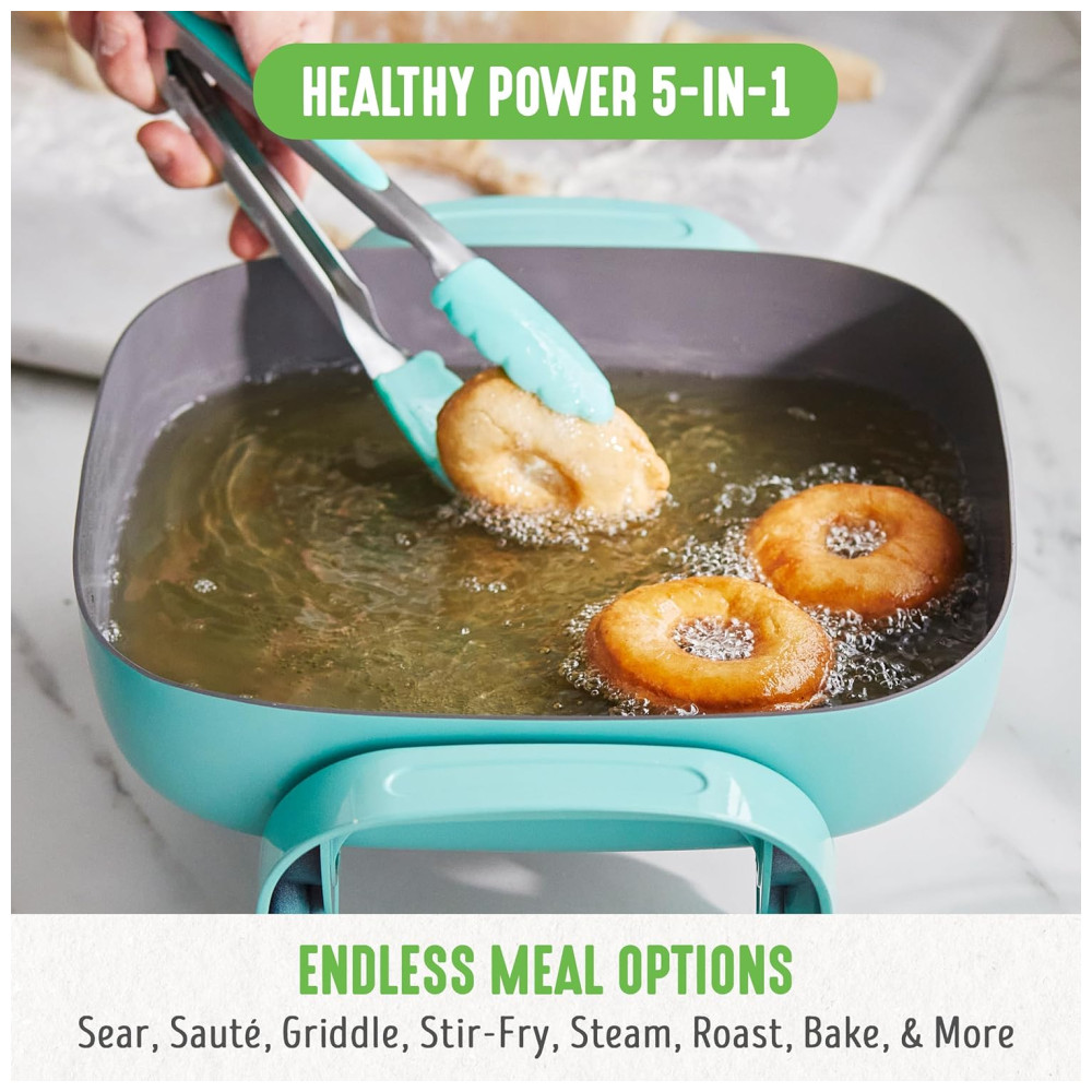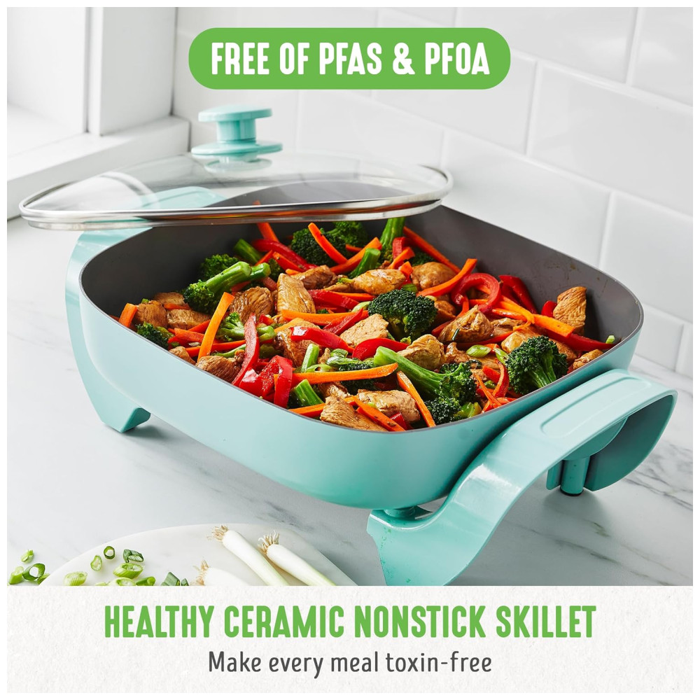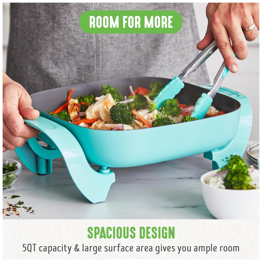 Apresentando a Frigideira Elétrica Quadrada GreenLife de 30 cm e 5 Litros – a escolha perfeita para quem busca praticidade, saúde e eficiência na cozinha!